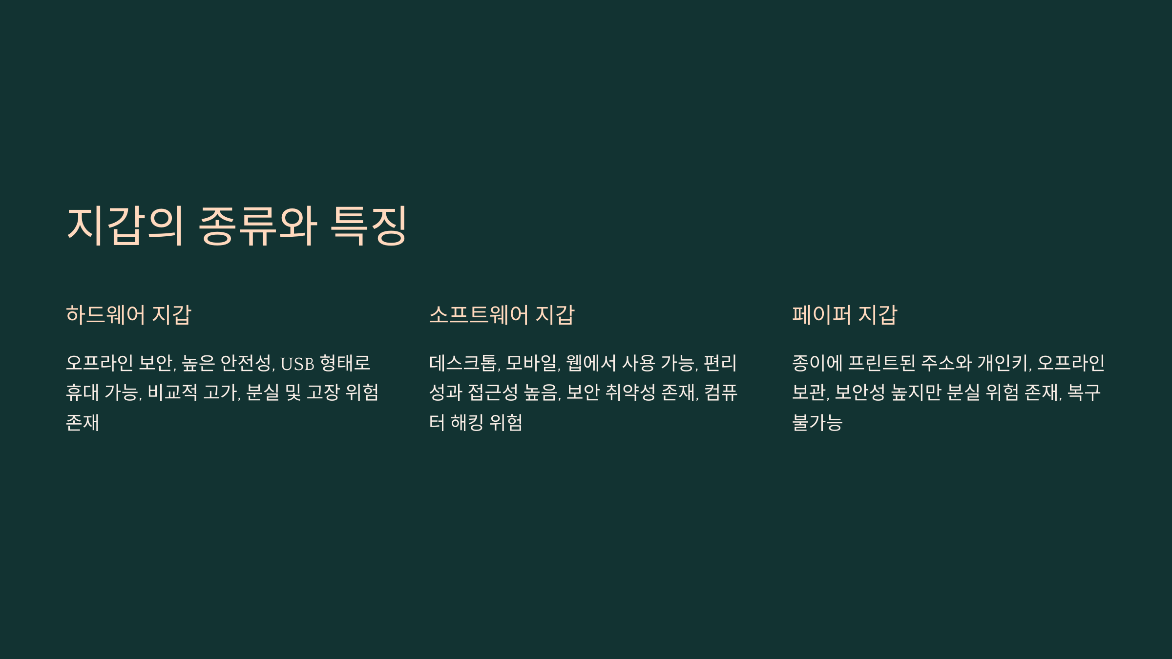 반대로, 콜드 월렛은 인터넷과 완전히 분리된 상태에서 작동하는 지갑이에요. 하드웨어 지갑, 페이퍼 월렛 등이 이에 포함되죠. 콜드 월렛은 해킹에 대한 노출이 거의 없기 때문에 장기적인 암호화폐 보관에 적합해요. 하지만 거래가 필요한 경우엔 연결 절차가 다소 번거로울 수 있답니다.