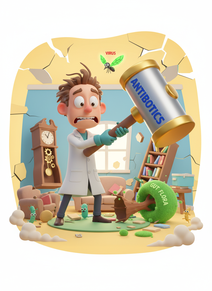 "빨리 낫고 싶어서 항생제 좀 지어주세요." 병원에서 흔히 하는 말입니다. 하지만 감기의 원인은 90% 이상이 바이러스이고, 항생제는 세균을 죽이는 약입니다. 바이러스성 감기에 항생제를 쓰는 것은 모기를 잡으려 망치를 휘두르는 것과 같습니다.