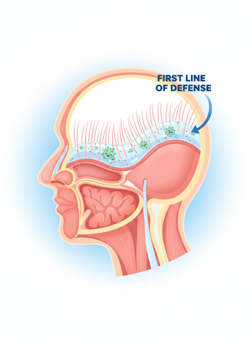 호흡기 점막은 우리 몸의 1차 방어선입니다. 촉촉한 점막은 바이러스를 흡착해 밖으로 배출하지만, 건조한 점막은 바이러스가 침투하기 가장 좋은 고속도로가 됩니다.겨울철이나 환절기 실내 습도가 20~30%까지 떨어지는 경우가 많은데, 이는 마치 물고기를 물 밖으로 꺼내놓은 것과 같습니다. 가습기를 틀거나 젖은 수건을 활용해 실내 습도를 50~60%로 유지하는 것만으로도, 점막의 방어력을 2배 이상 끌어올릴 수 있습니다. 물을 '씹어 먹듯이' 자주 조금씩 마시는 습관이 중요한 이유도 여기에 있습니다.