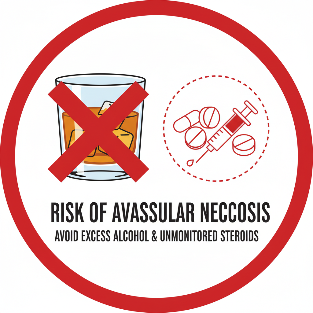2. 생활 습관 점검: 잦은 음주나 스테로이드 복용은 대퇴골두 무혈성 괴사의 주요 원인이므로 조절이 필요합니다.