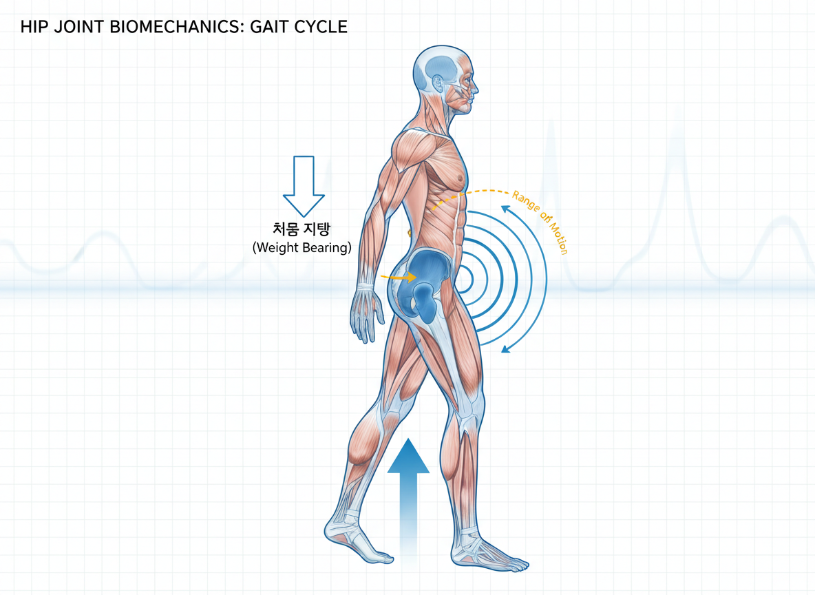 💡 알고 계셨나요? 고관절은 허벅지 뼈의 머리 부분(대퇴골두)과 골반 뼈의 움푹 들어간 부분(비구)이 만나 이루어진 구형 관절이에요. 이 견고하면서도 유연한 구조 덕분에 우리는 다리를 자유롭게 움직일 수 있답니다.