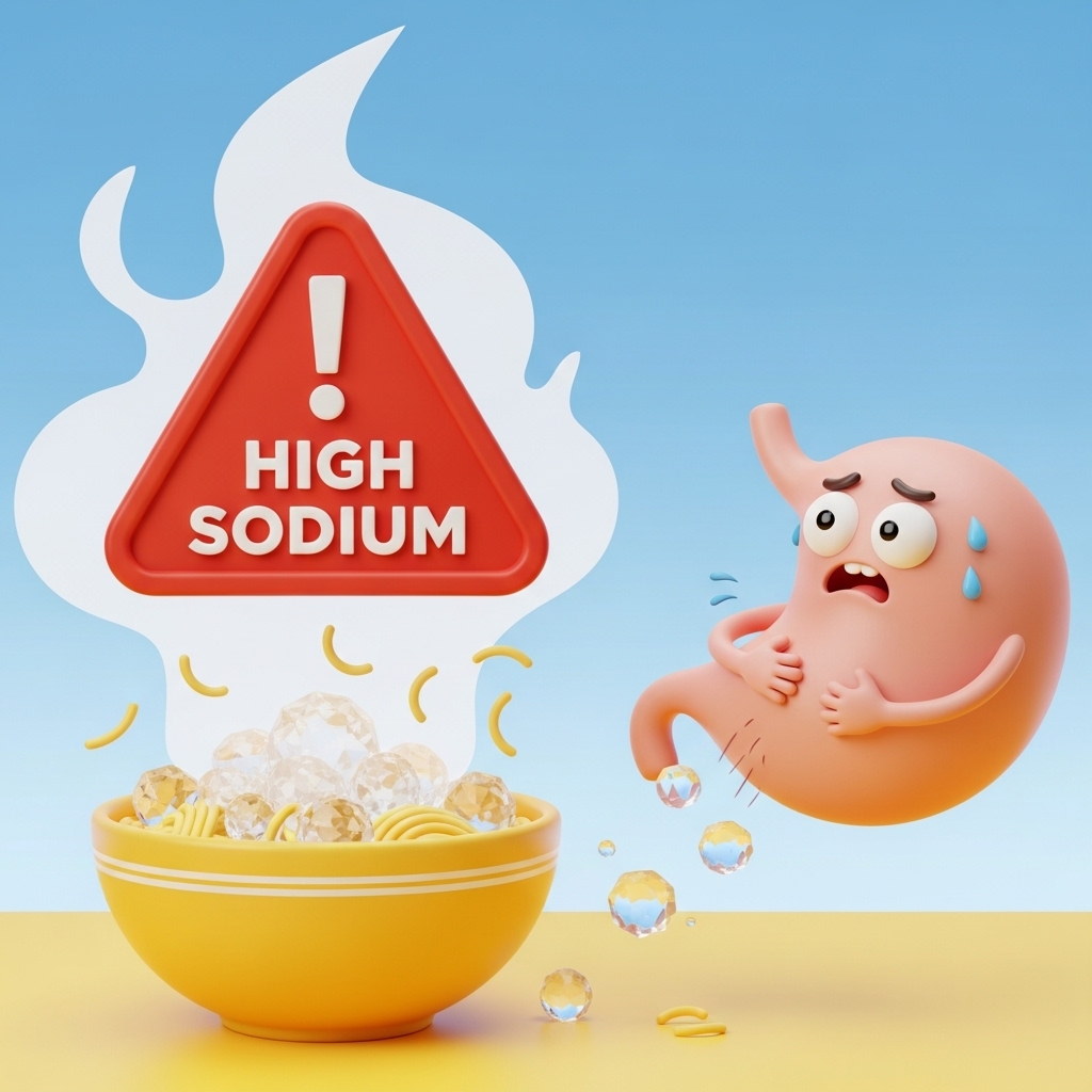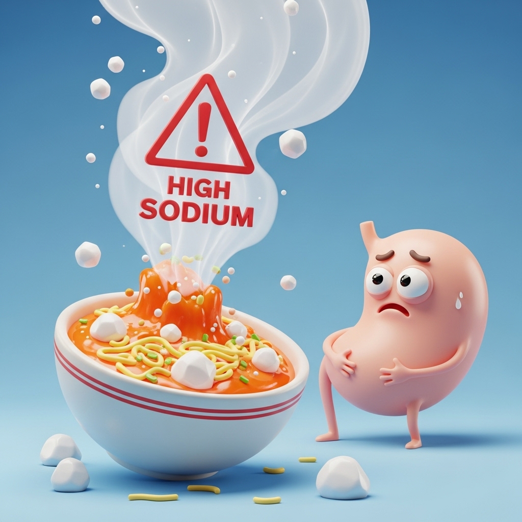 - 가공식품: 라면, 통조림, 즉석식품, 냉동 간편식 등 나트륨이 높은 식품.