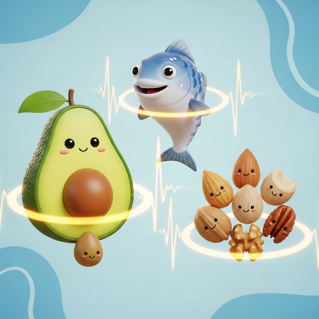 불포화지방산은 혈중 콜레스테롤 수치를 낮춰줍니다. 아보카도, 견과류, 올리브유, 등푸른생선(고등어, 연어) 등이 좋은 공급원이죠.