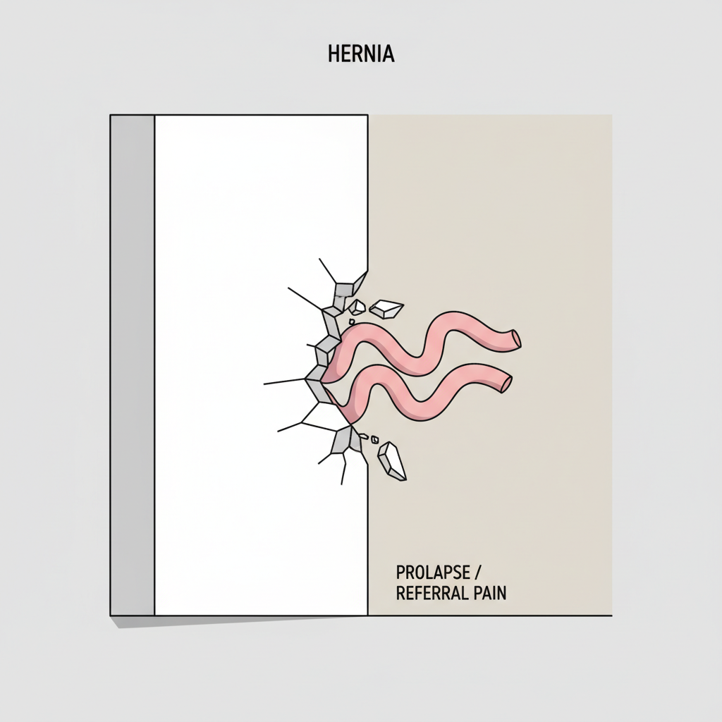 또한 '서혜부 탈장'도 원인일 수 있습니다. 복벽이 약해져서 장이 아래로 밀려 내려오는 현상인데, 이때 장이 고환 쪽으로 내려오면서 통증을 유발합니다. 서 있을 때 사타구니 쪽이 불룩하게 튀어나오고 누우면 들어간다면 탈장을 의심해야 합니다. 집의 벽이 무너져 내용물이 옆방으로 쏟아지는 상황과 비슷합니다.