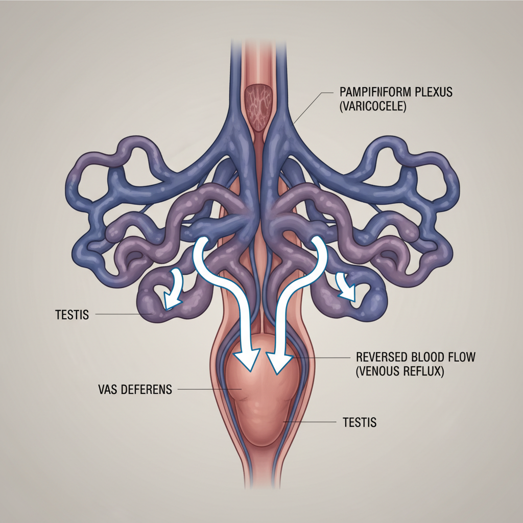 이 경우는 극심한 통증보다는 '묵직하고 불쾌한 둔통'이 특징입니다. 특히 오래 서 있거나 배에 힘을 줄 때 심해지고, 누우면 편안해지곤 하죠. 해부학적 구조상 왼쪽 고환에서 훨씬 흔하게 발생합니다. 당장 생명에 지장을 주진 않지만, 장기적으로는 고환의 온도를 높여 정자의 질을 떨어뜨리고 남성 불임의 주요 원인이 되기도 합니다. "묵직하게 당기는 느낌"이 지속된다면 비뇨기과 검진이 필요합니다.