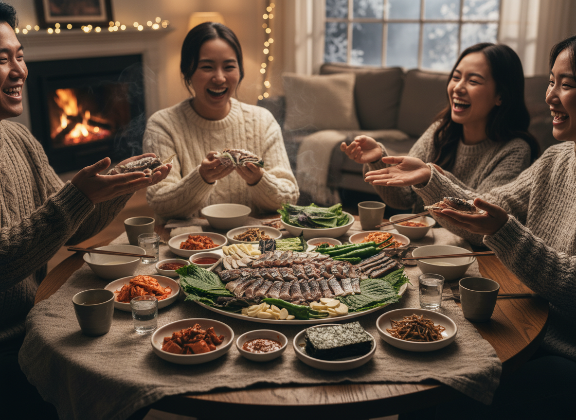 - ✅ 황금 쌈 조합: 알배추, 미역, 마늘, 고추, 김에 초장/막장을 더해 풍성하게 즐기세요.