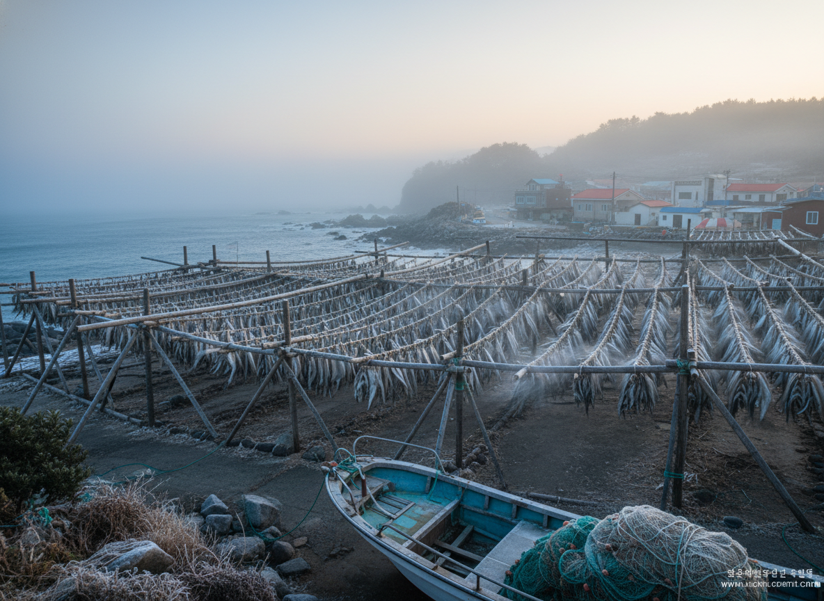 과메기는 겨울철 동해안의 대표적인 별미예요. 차가운 해풍과 햇살을 맞으며 자연 숙성되는 과정에서 특유의 쫄깃한 식감과 깊은 고소함이 극대화되는데, 이 맛은 정말 다른 어떤 해산물에서도 찾아보기 힘든 매력이죠.
