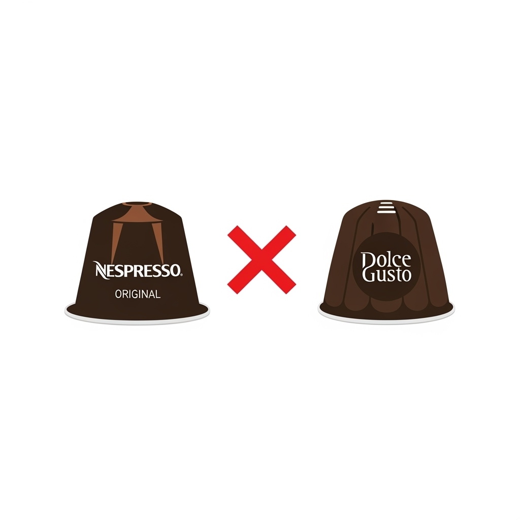 네스프레소 머신(오리지널 기준)에 돌체구스토 캡슐을 넣을 수 없으며, 그 반대도 마찬가지입니다. 겉보기에는 비슷해 보일지 몰라도, 실제로는 캡슐의 크기와 모양이 완전히 다릅니다.