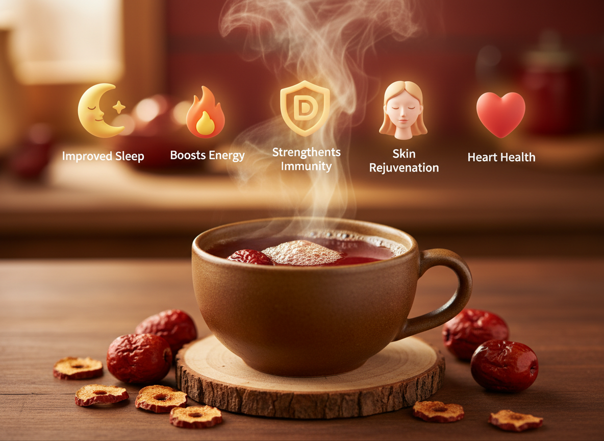잠 못 드는 밤이 길어지거나 손발이 차가워 고생하고 계신가요? 예로부터 '천연 신경 안정제'라 불리는 대추차는 불면증 완화와 체온 상승에 탁월한 효과를 발휘합니다. 오늘 소개할 대추차의 핵심 효능 5가지를 통해, 약에 의존하지 않고도 내 몸을 따뜻하고 편안하게 만드는 지혜를 챙겨가시길 바랍니다.