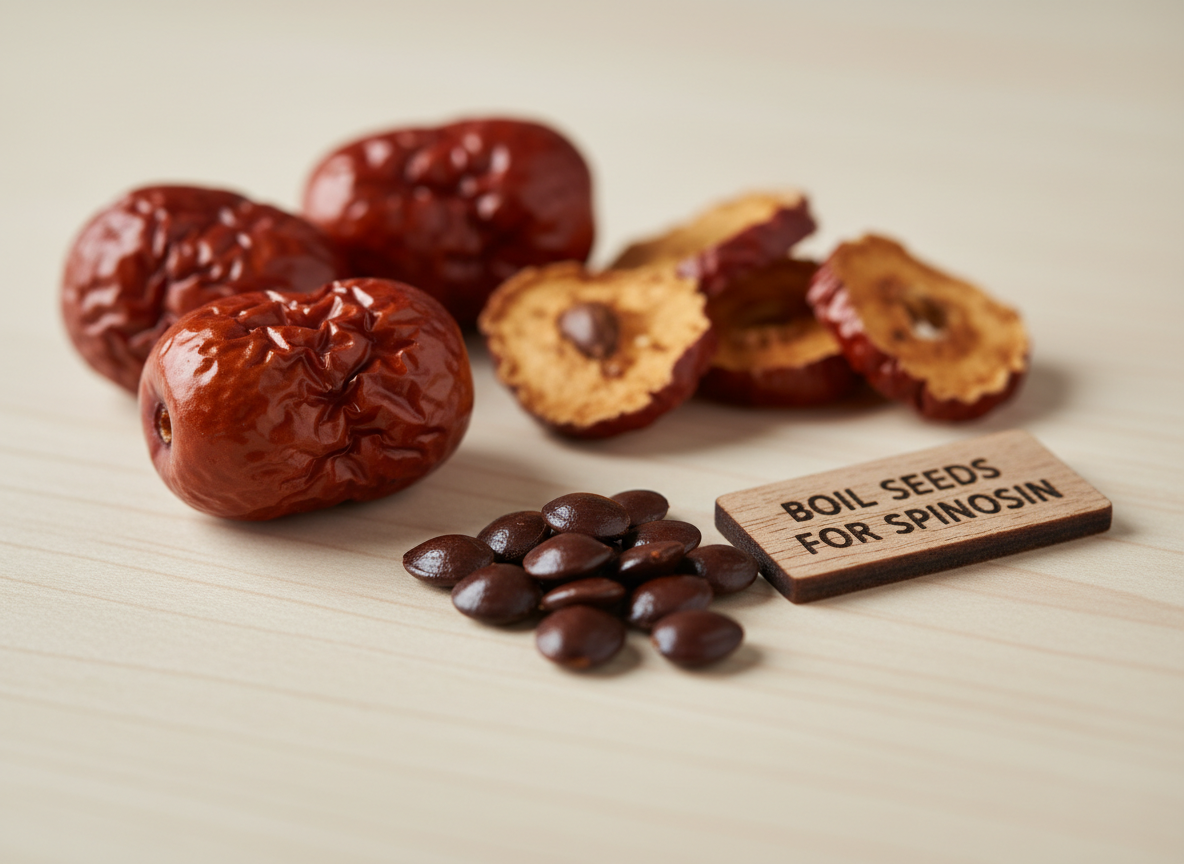 A: 생대추의 씨앗에는 미량의 독성이 있을 수 있으나, 이를 볶거나 물에 푹 끓이면 독성은 사라지고 오히려 신경 안정에 좋은 성분이 우러나옵니다. 따라서 차로 끓일 때는 씨를 제거하지 않는 것이 좋습니다.