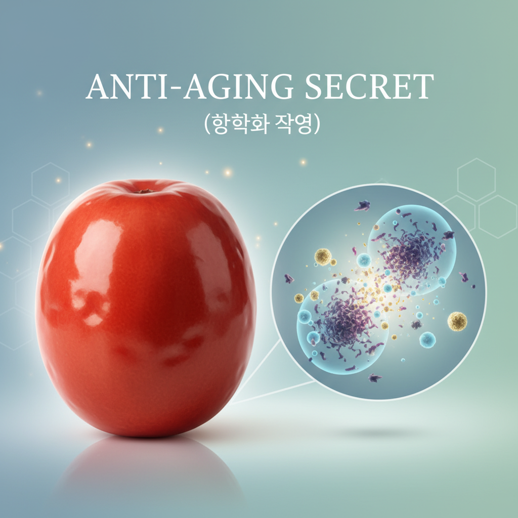 대추의 붉은색 껍질에는 베타카로틴이라는 강력한 항산화 물질이 다량 함유되어 있습니다. 이는 체내에 쌓인 활성산소를 제거하여 세포의 노화를 막고 피부 탄력을 유지하는 데 기여합니다.