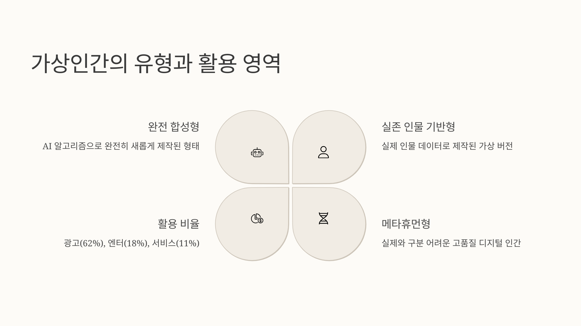 디지털 가상인간은 그 형태에 따라 리얼형, 캐릭터형, 혼합형으로 나뉘고, 활용 영역도 점점 넓어지고 있어요. 단순히 외모만 다른 게 아니라, 사용 목적과 타겟 소비자층에 따라 전략적으로 구분돼요.