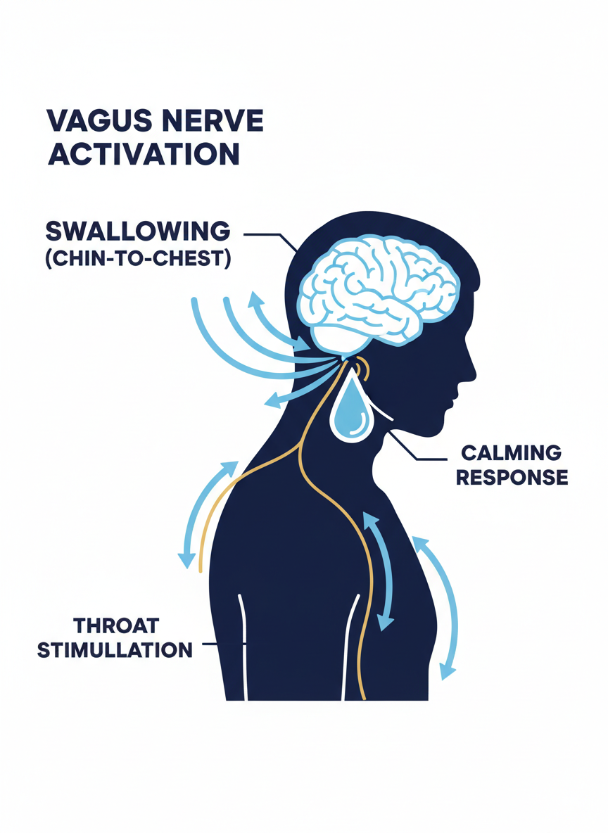 - 발살바법 (숨 참기): 숨을 깊게 들이마신 뒤, 코와 입을 막고 대변을 볼 때처럼 아랫배에 힘을 줍니다. 10~15초 정도 버티면 혈압이 오르며 미주신경이 자극받아 딸꾹질이 멈춥니다.