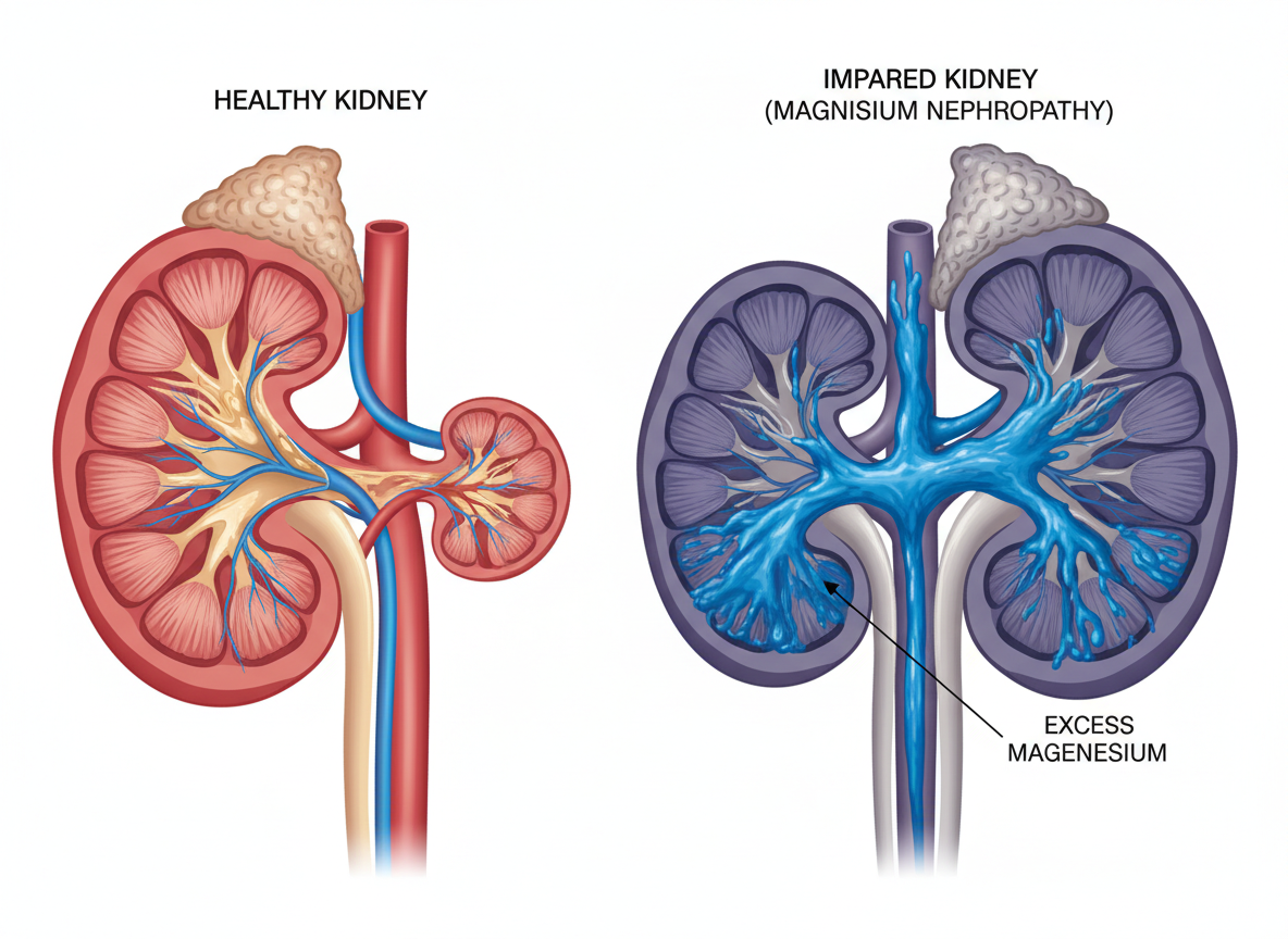 2. 신장 기능이 저하된 분들에게 마그네슘 축적은 생명을 위협할 수 있습니다.