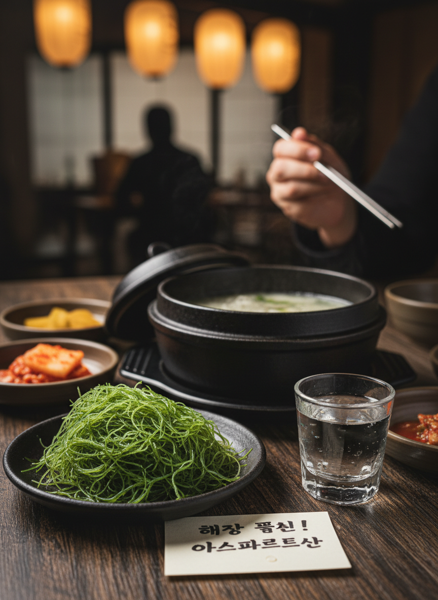 매생이에는 아스파라긴산이 콩나물의 3배 이상 들어있습니다. 숙취 해소 속도를 높이고 간세포 재생을 돕는 최고의 해장 음식입니다.