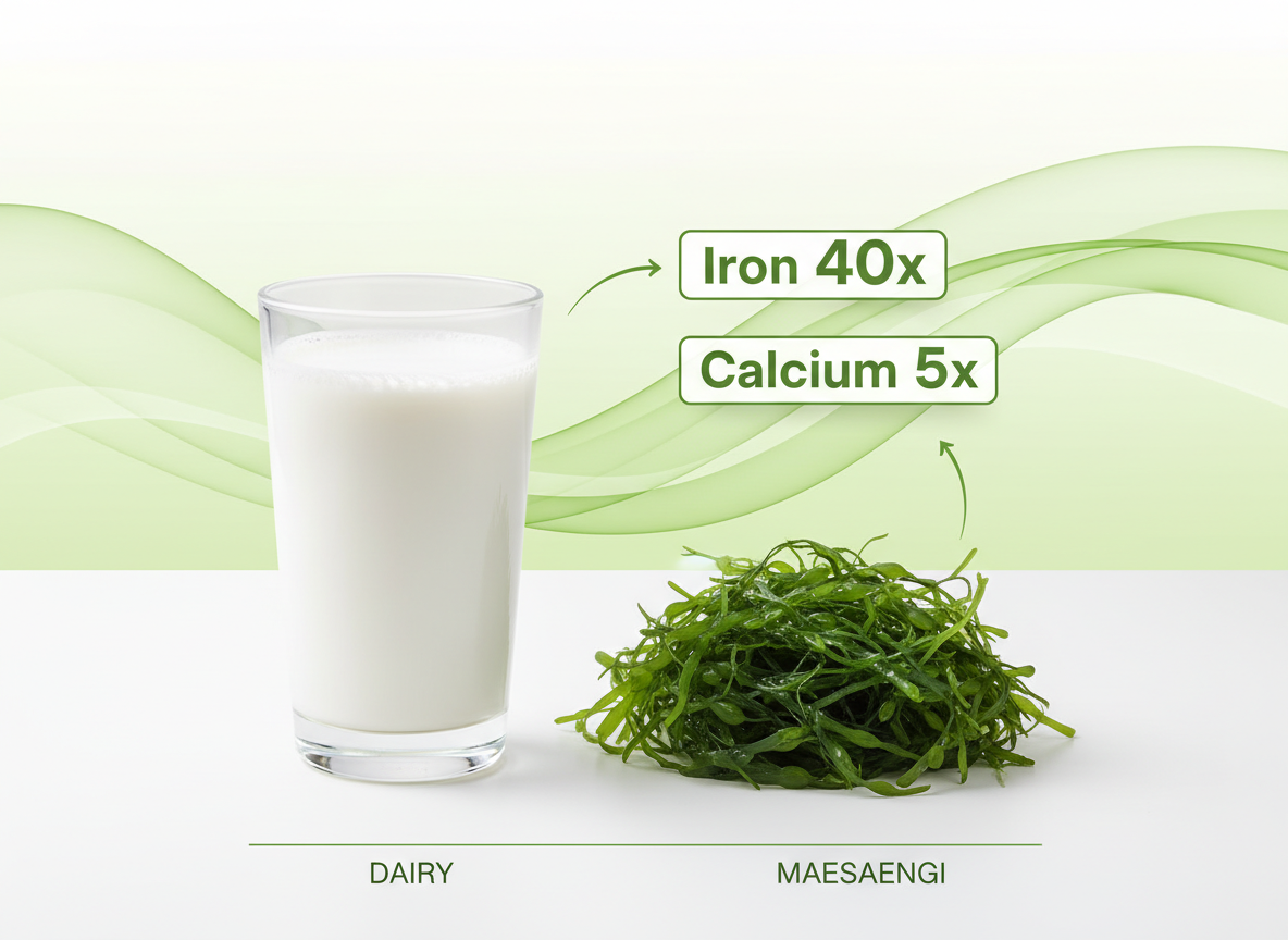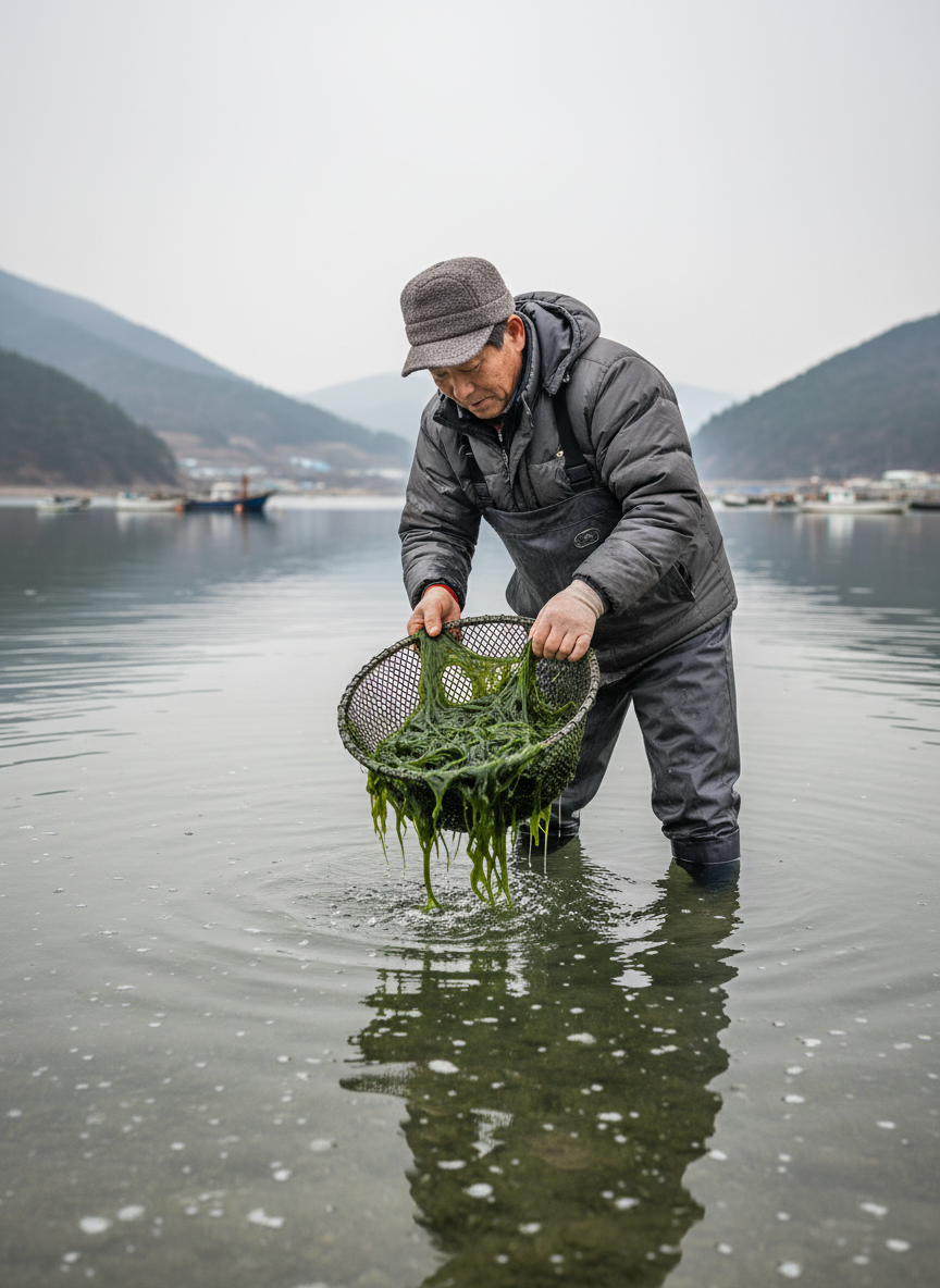 머리카락보다 훨씬 가느다란 굵기의 매생이는 수많은 영양소를 촘촘히 머금고 있습니다. 특히 엽록소(클로로필)가 풍부하여 우리 몸의 독소를 배출하고 세포를 재생하는 데 도움을 주죠. 단순한 해조류를 넘어 기능성 식품으로서의 가치도 매우 높게 평가받고 있습니다.