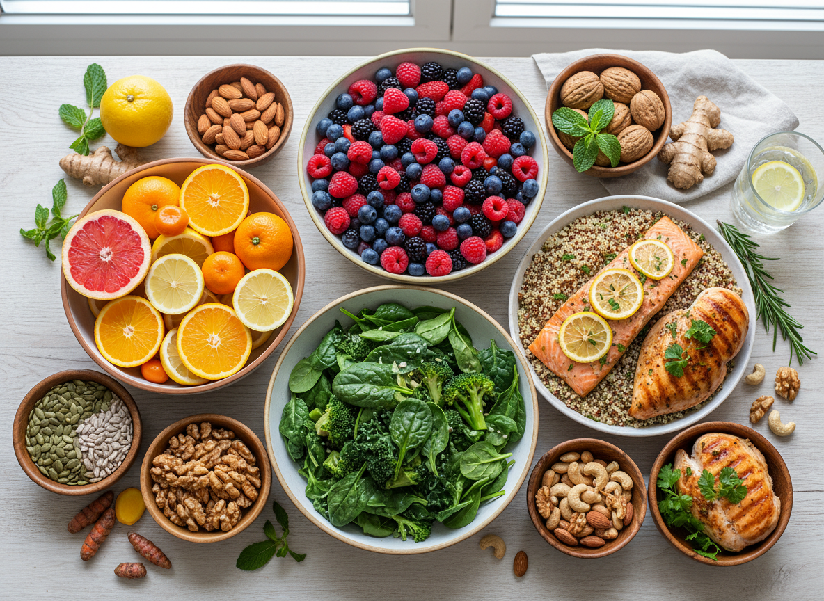- 균형 잡힌 식단: 비타민과 미네랄이 풍부한 채소, 과일, 단백질 위주의 식사를 꾸준히 하는 것이 좋습니다. 특히 면역력에 좋은 아연, 비타민 C, 비타민 D를 충분히 섭취하는 데 신경 써주세요.