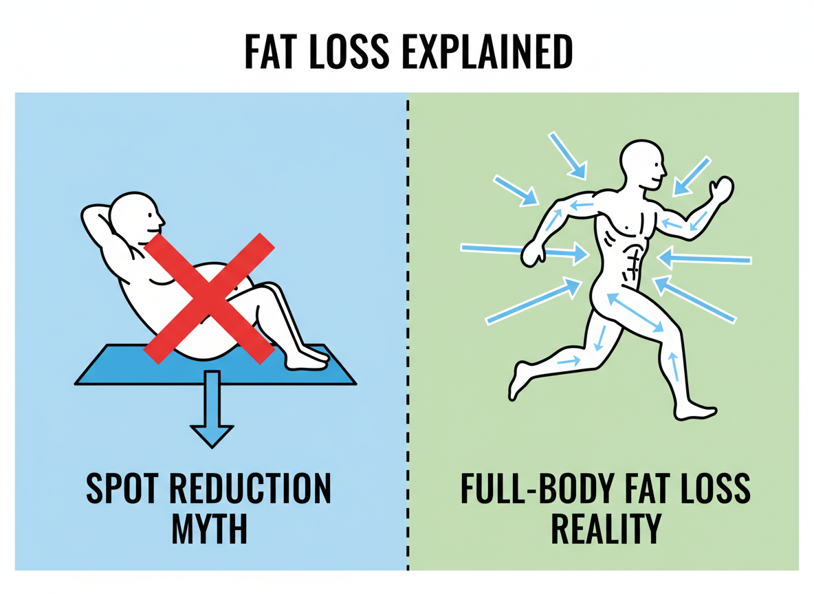 A: 안타깝게도 특정 부위의 살만 빼는 '부분 감량'은 불가능에 가깝습니다. 윗몸일으키기는 복근을 단련해 주지만, 그 위의 지방을 걷어내려면 전신 유산소 운동과 식단 병행이 필수입니다.