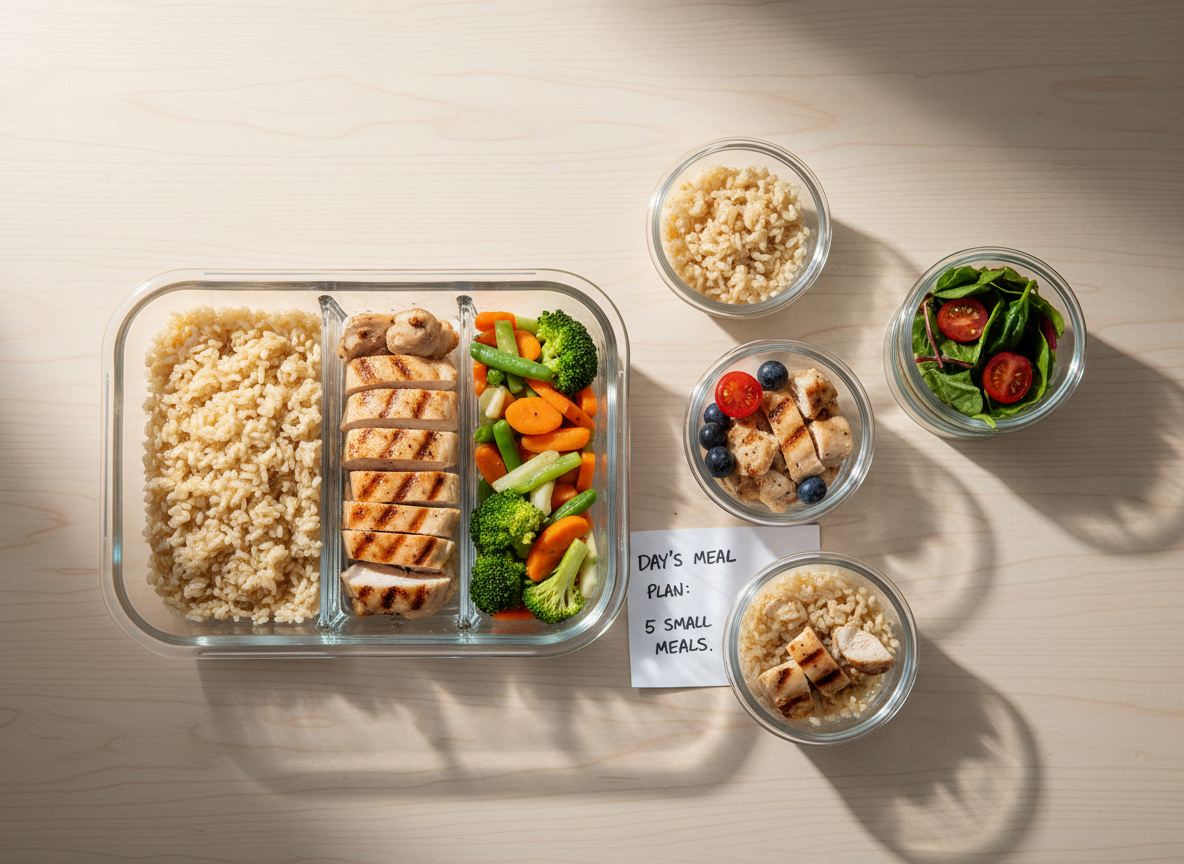 하루 세 끼를 규칙적으로 먹는 것이 중요해요. 그리고 한 번에 많이 먹기보다는 소량씩 여러 번에 나눠 먹는 것이 혈당 관리에 더 유리하고, 과식을 막아줘요. 간격이 너무 길어지면 다음 식사 때 폭식하기 쉬워지거든요.