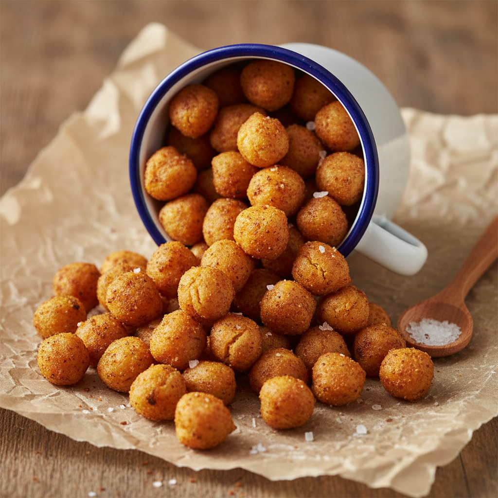 이건 정말 중독성이 강해서 한 번 만들면 멈출 수가 없어요! 삶은 병아리콩에 올리브유, 소금, 후추, 파프리카 가루 등을 넣고 버무린 다음, 에어프라이어나 오븐에 바삭하게 구워주면 끝. 겉은 바삭하고 속은 부드러워서 영화 볼 때나 맥주 안주로 최고예요. 아이들도 정말 좋아해서 건강 간식으로도 아주 좋답니다.