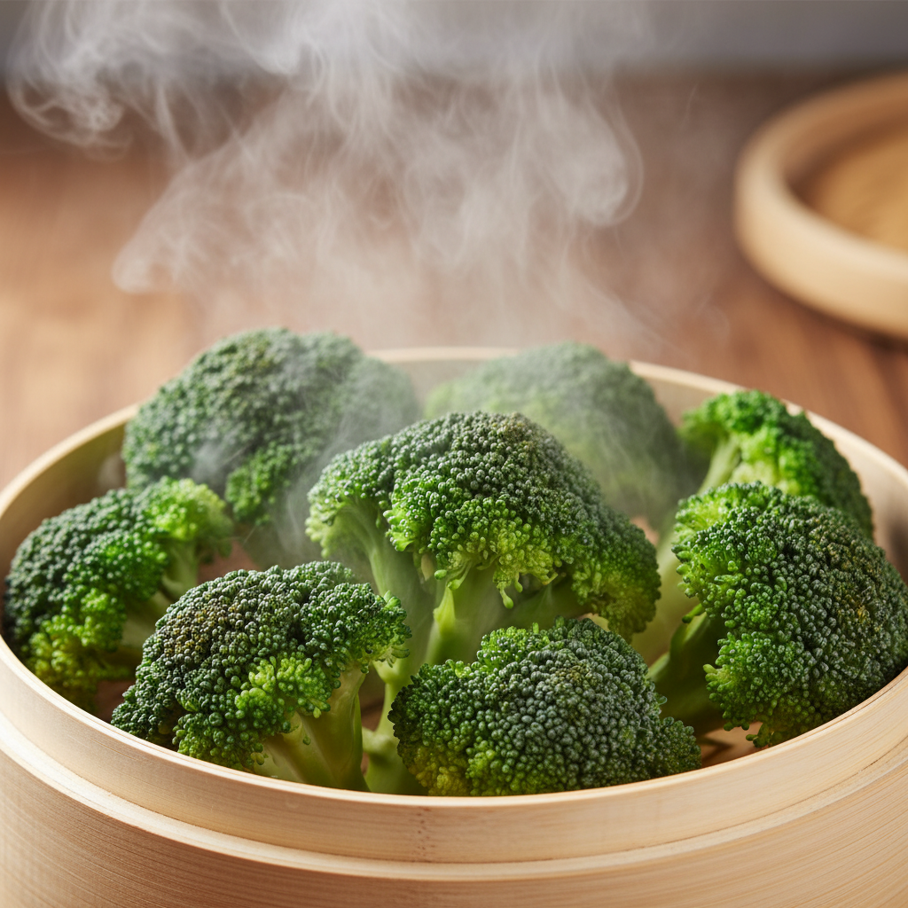 많은 분이 실수하는 것 중 하나가 브로콜리를 끓는 물에 푹 삶는 것입니다. 하지만 비타민 C와 설포라판은 열에 매우 약해 물에 삶으면 영양소가 대부분 파괴됩니다. 가장 좋은 방법은 **'쪄서'** 먹는 것입니다.
