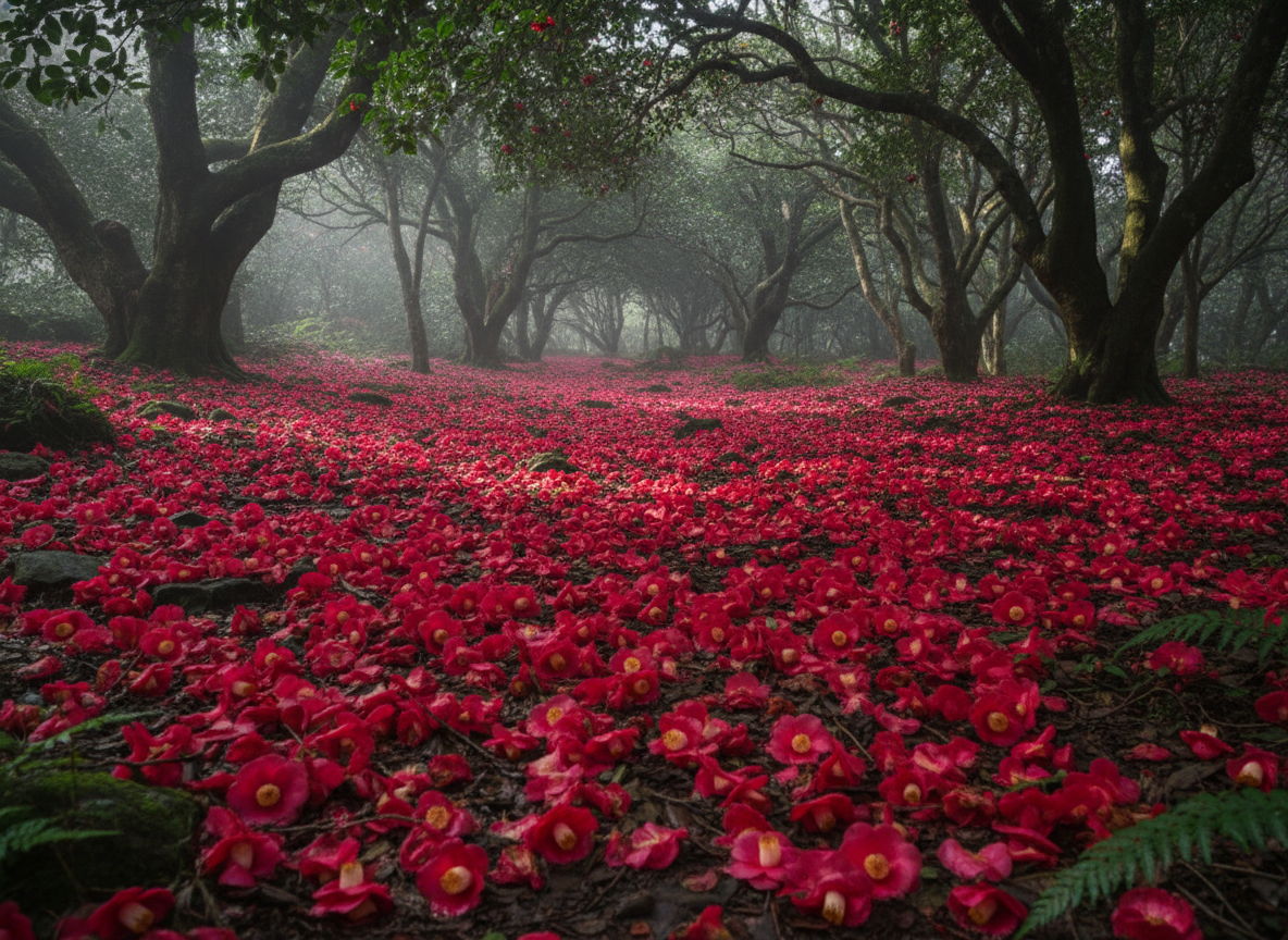 그냥 '해산물이나 실컷 먹고 와야지'라고 단순하게 생각하시는데, 천만의 말씀이에요! 든든하게 식사를 마치고 소화도 시킬 겸, 마량리 동백나무 숲으로 천천히 걸어 올라가 보세요. 수백 년 세월 동안 매서운 바닷바람을 견뎌낸 짙푸른 잎사귀들 사이로 붉은 융단처럼 깔린 동백꽃이 단번에 시선을 사로잡습니다.