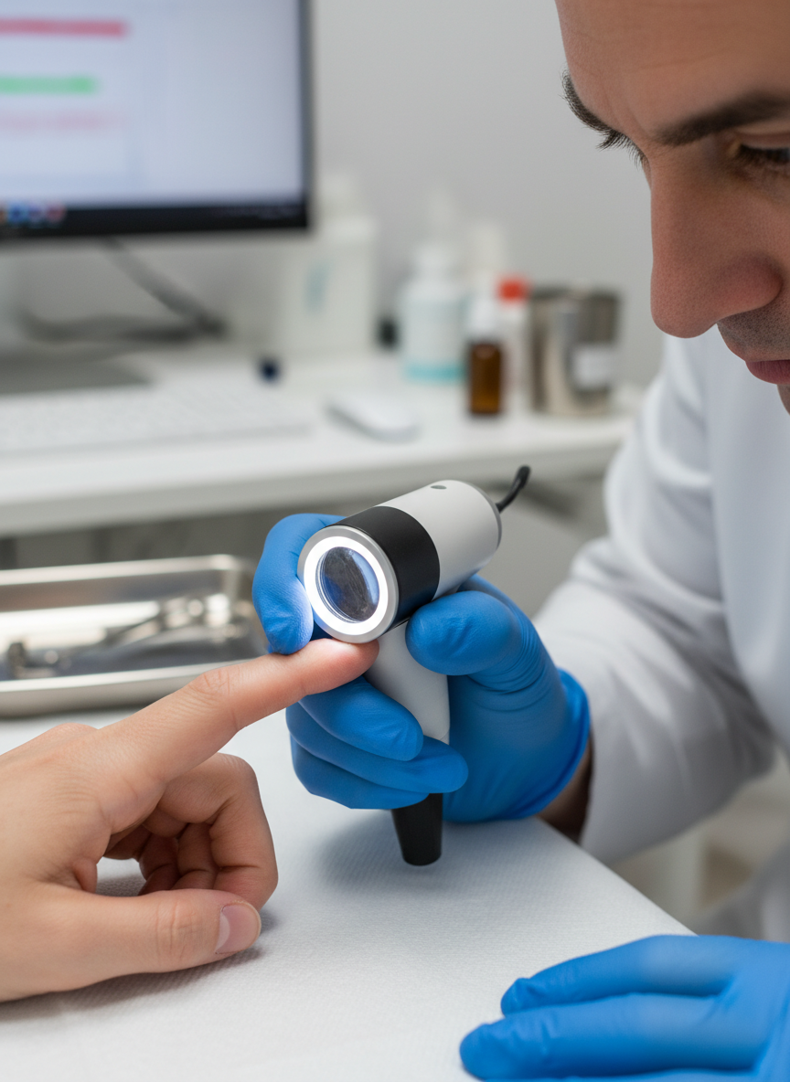 - 손톱 주변 피부 침범 (허친슨 징후): 손톱 아래의 검은 줄이 손톱 주변 피부(큐티클)까지 번져 보이는 경우. 이는 흑색종의 중요한 징후 중 하나입니다.