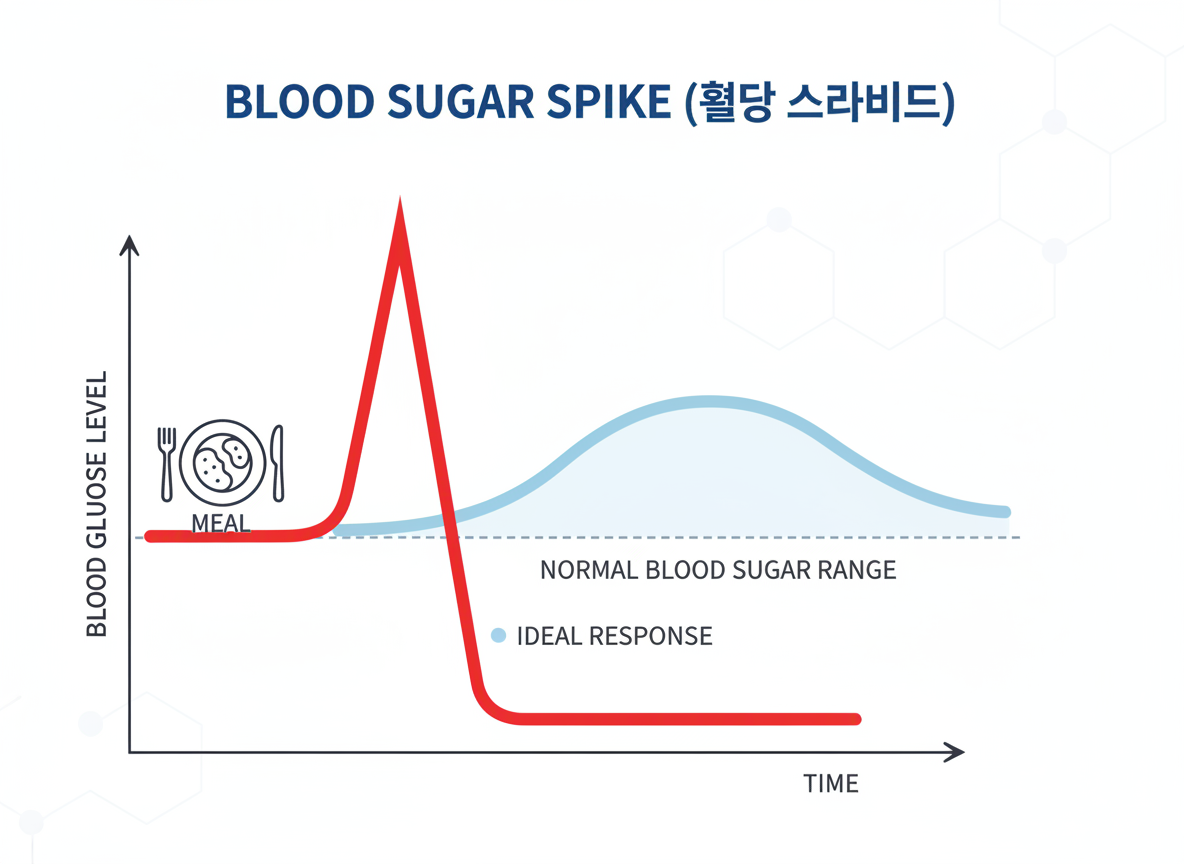 📌 '혈당 스파이크'는 식후 혈당이 급격히 상승했다가 빠르게 떨어지는 현상입니다. 혈관 손상, 산화 스트레스를 유발해 심혈관 질환 위험을 높여요. 건강한 식단과 규칙적인 생활로 예방하는 것이 아주 중요합니다!