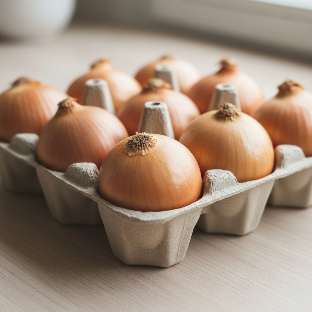 양파를 하나 넣고 매듭을 묶고, 그 위에 다시 하나를 넣고 묶는 '줄줄이 소시지' 방식을 적용해 보세요. 이렇게 하면 양파끼리의 접촉을 100% 차단하여 통기성을 극대화할 수 있습니다. 보기에 조금 우스꽝스러울 수 있지만, 이 방법만큼 공기 순환을 확실하게 보장하는 방법은 없습니다. 만약 스타킹이 부담스럽다면 계란 판을 활용하는 것도 훌륭한 대안입니다. 양파가 바닥에 직접 닿지 않도록 띄워주어 무름병을 획기적으로 줄여줍니다.