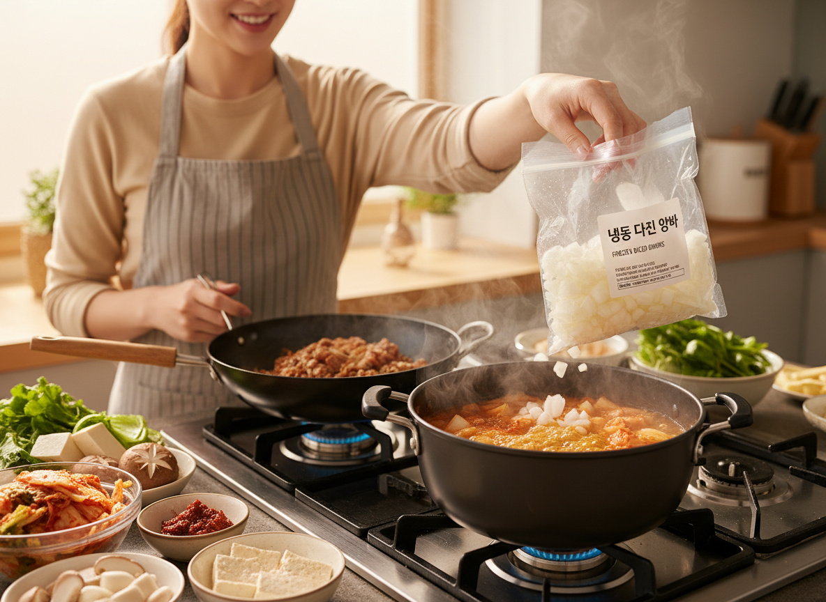 여기서 팁을 하나 더하자면, 지퍼백에 담기 전 오일을 살짝 뿌려 버무린 뒤 얼려보세요. 이렇게 '오일 코팅'을 하면 양파끼리 뭉쳐서 떡이 되는 것을 막아주고, 요리할 때 볶음용으로 바로 투입하기에도 훨씬 수월합니다. 찌개용, 볶음용, 카레용으로 라벨링까지 해둔다면 바쁜 저녁 시간, 도마를 꺼낼 필요도 없이 요리 시간을 10분은 단축해 주는 훌륭한 밀키트가 됩니다.