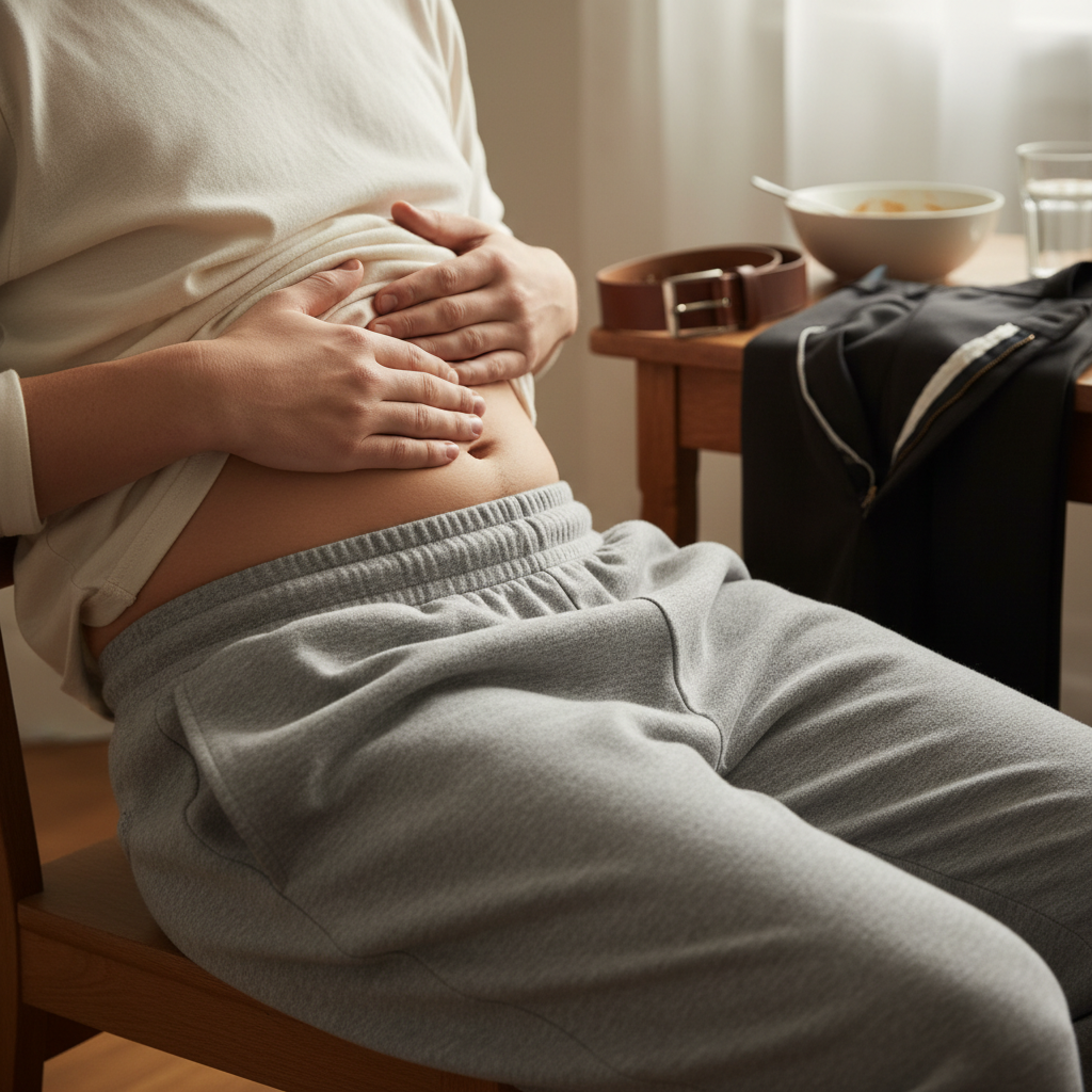 꼭 살을 빼는 것뿐만 아니라, 꽉 끼는 바지나 보정 속옷을 피하는 것도 중요합니다. 식사 후에는 허리띠를 한 칸 느슨하게 풀고 편안한 옷차림을 유지하세요. 배가 편안해야 위장도 편안하게 움직일 수 있습니다.