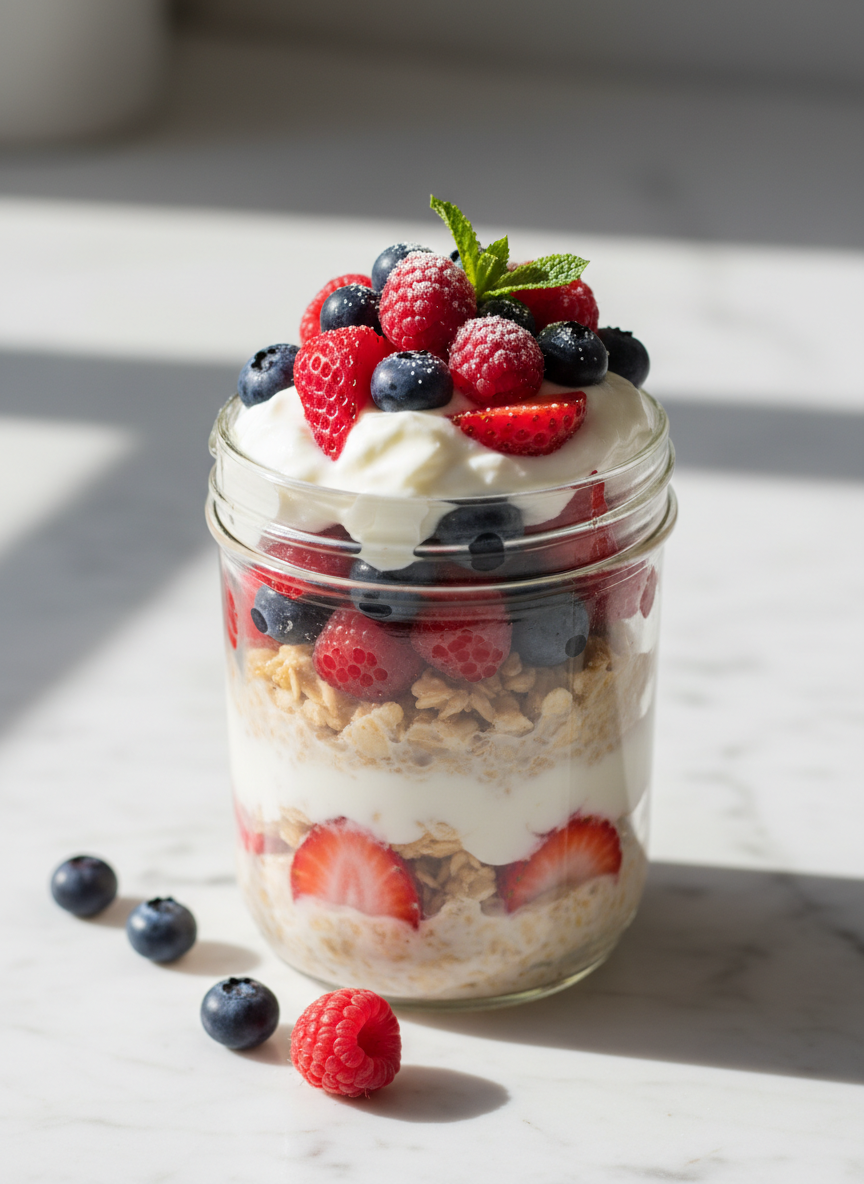 바쁜 아침, 조리할 시간조차 없다면 전날 밤에 만들어두는 '오오오(오버나이트 오트밀)'가 정답입니다. 불 없이도 훌륭한 디저트 같은 한 끼가 완성돼요.