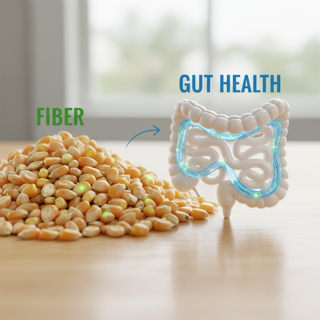 - • 옥수수는 식이섬유가 풍부하여 장 건강과 쾌변에 도움을 줍니다.