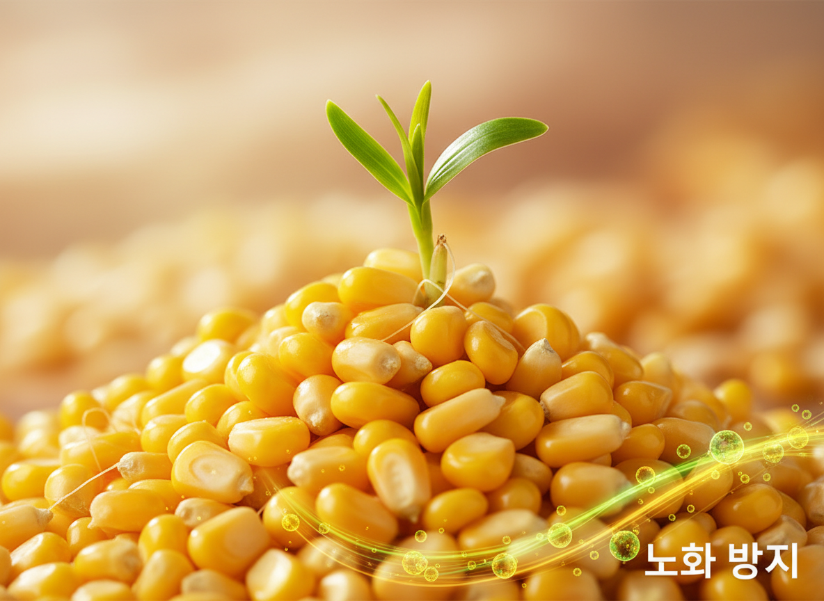 노화와 질병의 주범인 활성산소! 옥수수에는 페룰산 등 폴리페놀과 카로티노이드 계열의 항산화 물질이 풍부합니다. 이들은 활성산소를 중화시켜 세포 손상을 막고 노화를 늦추는 데 기여하죠. 꾸준히 옥수수를 먹으면서 피부도 생기 있어 보이고 전반적으로 활력이 도는 느낌이 들어요.