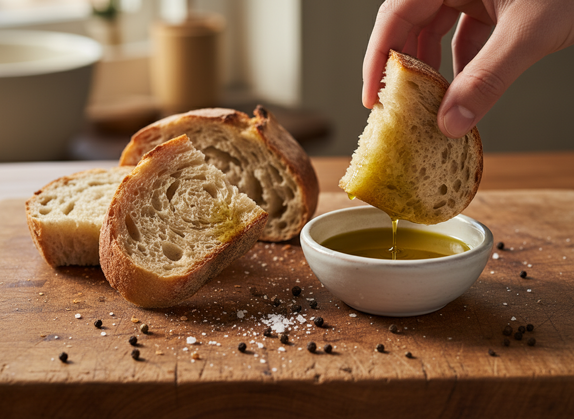 - 빵과 함께: 갓 구운 빵을 올리브오일에 찍어 먹으면 그 고소함과 향긋함이 정말 일품이에요. 마늘이나 허브를 살짝 첨가해도 좋고요.