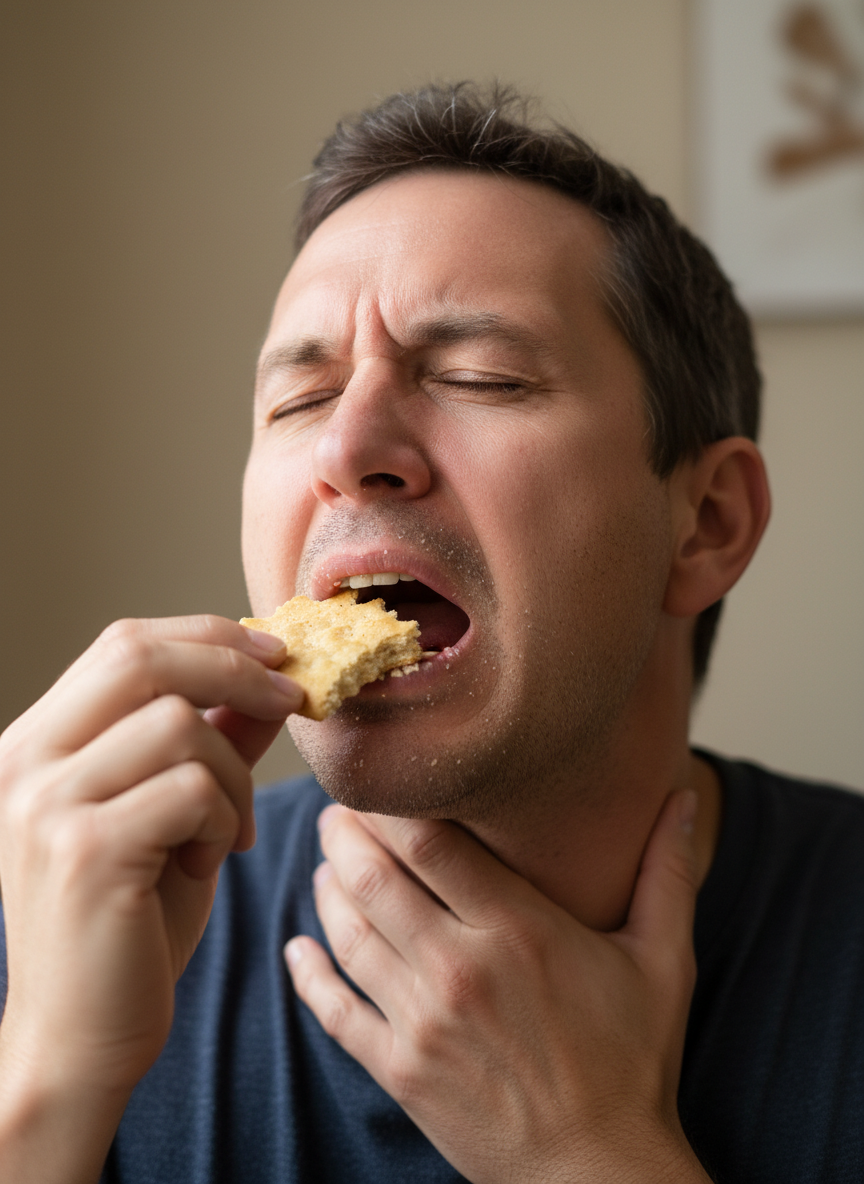 - 수분 섭취 방식 변경: 한꺼번에 많이 마시기보다 조금씩 자주 물을 머금어 입안을 적셔주세요.