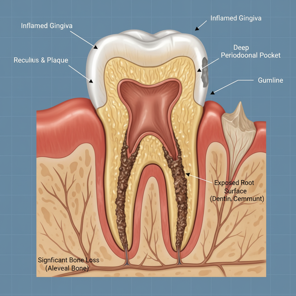 - 치주질환 (잇몸병): 가장 흔하고 치명적인 원인입니다. 치석과 치태에 있는 세균이 잇몸에 염증을 일으키고, 염증이 심해지면 잇몸뼈(치조골)까지 녹이면서 잇몸이 함께 무너져 내리게 됩니다.