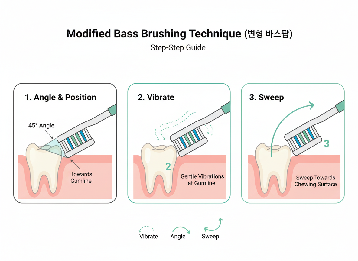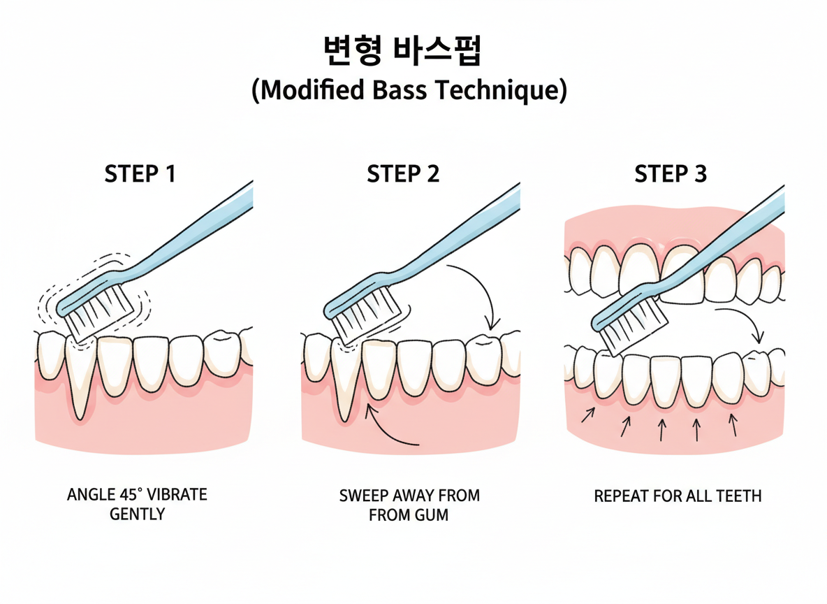 올바른 칫솔질: '변형 바스법' 실천하기