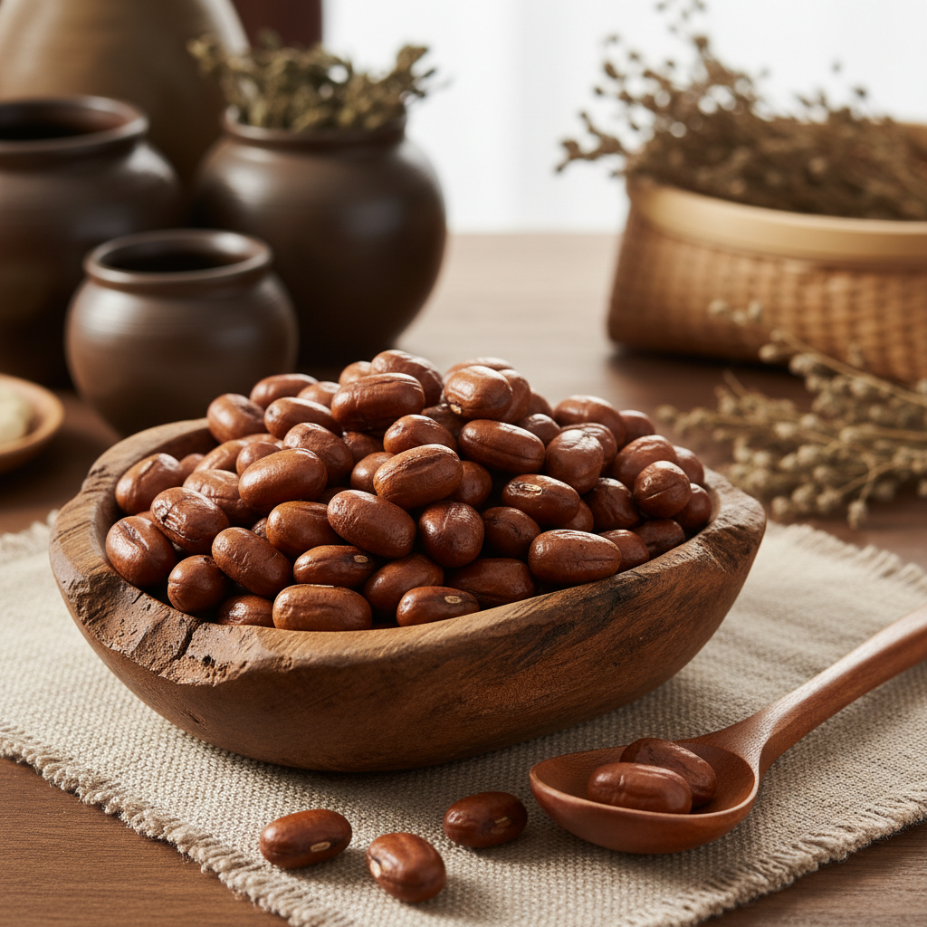 - 물 1L 기준: 잘 덖어진 작두콩 3~5조각(껍질 포함)을 넣고 물이 끓기 시작하면 약불에서 5~10분 정도 더 우려냅니다.