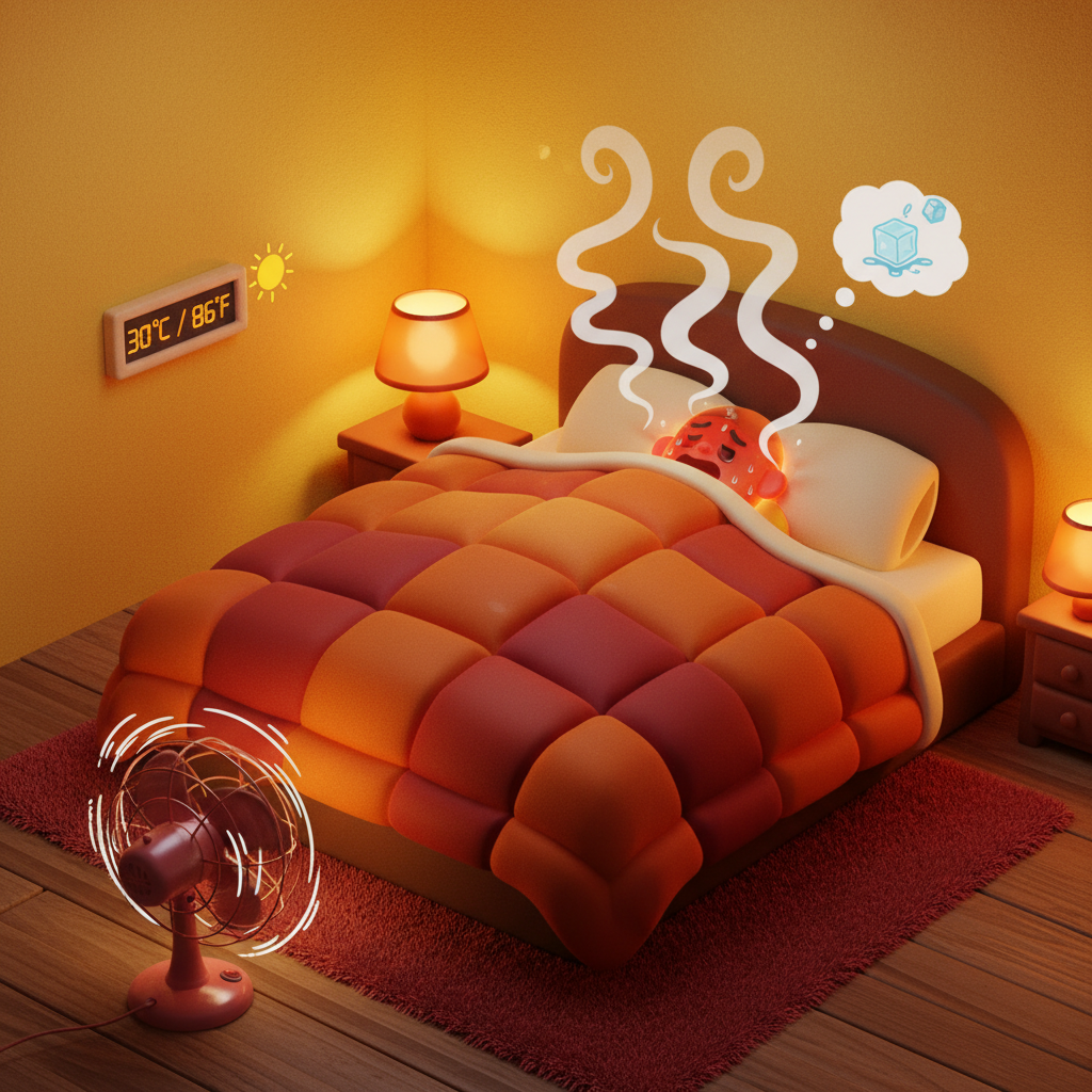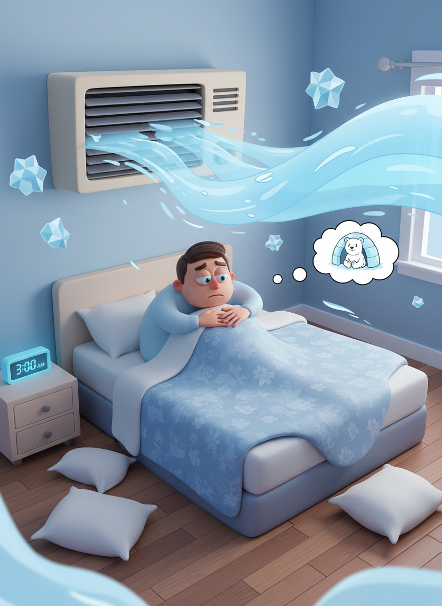 세 번째는 의외로 많은 분이 놓치는 '체온' 문제입니다. 사람은 잠이 들 때 심부 체온이 약 1도 정도 떨어져야 깊은 잠에 빠질 수 있습니다. 그런데 겨울철 춥다고 보일러를 펄펄 끓이거나 전기장판 온도를 너무 높게 설정하면, 몸이 열을 식히지 못해 잠드는 것을 방해받습니다. 반대로 여름철 에어컨을 너무 세게 틀어 추위를 느껴도 몸은 체온 유지를 위해 에너지를 쓰느라 잠들지 못합니다.