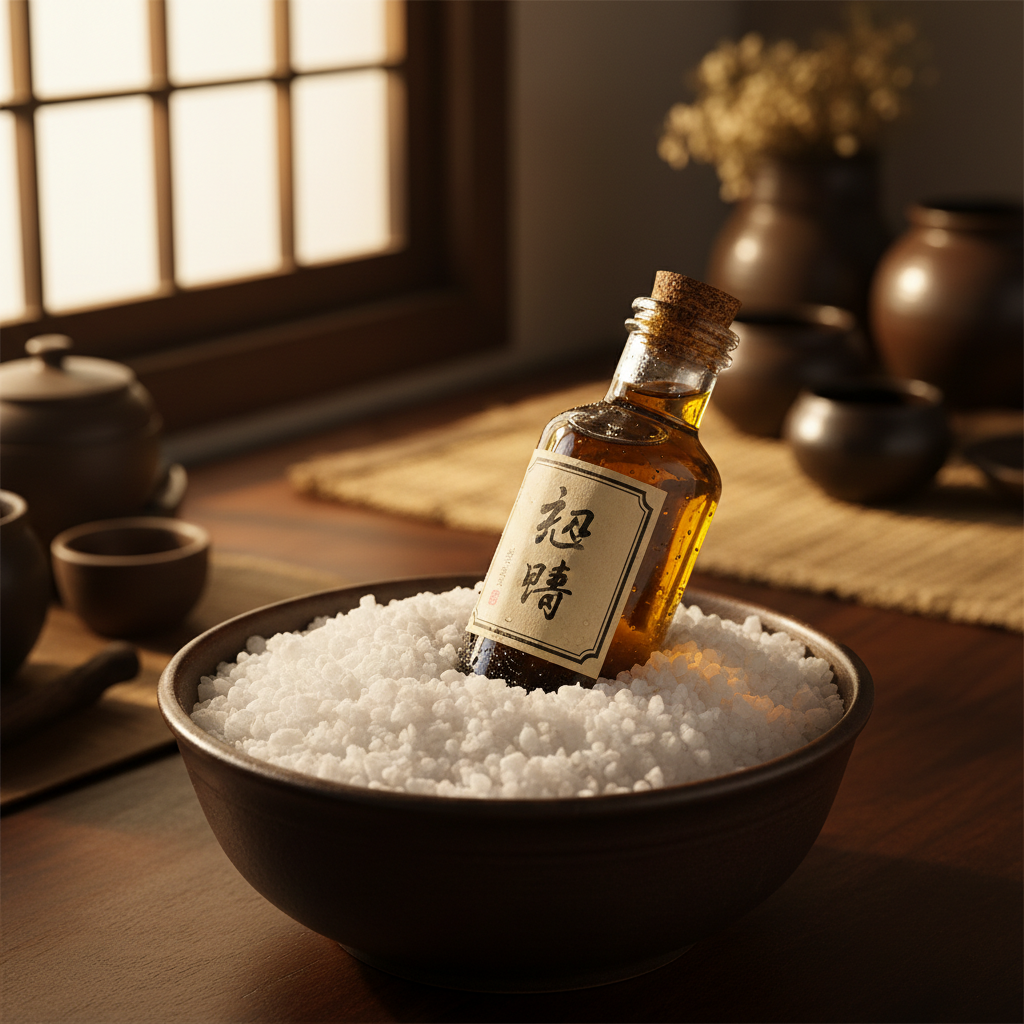 이 방법은 어르신들의 지혜가 담긴 비법이자, 과학적으로도 일리가 있는 팁입니다. 참기름을 보관할 때 굵은소금을 한 꼬집 정도 병 안에 넣어두거나, 소금 단지 속에 참기름 병을 묻어두는 방법입니다. 소금은 조해성(공기 중의 수분을 흡수하는 성질)을 가지고 있어 기름 주변의 미세한 습기를 빨아들입니다. 앞서 말씀드렸듯 수분은 기름 산패의 기폭제 역할을 하는데, 소금이 이 수분을 잡아주어 기름의 신선도를 획기적으로 늘려줍니다.