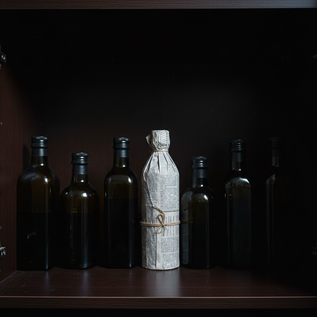 기름의 최대 적은 직사광선입니다. 자외선은 지방산의 연결고리를 끊어놓고 활성산소를 만들어내는데, 이는 곧장 쩐내(산패취)로 이어집니다. 시중에 판매되는 고급 기름들이 투명한 병이 아닌 짙은 갈색 병에 담겨 있는 이유가 바로 이 때문입니다. 하지만 갈색 병이라도 완벽하게 빛을 차단하기는 어렵습니다. 싱크대 상부장이나 팬트리처럼 어두운 곳에 두는 것이 기본이지만, 더 확실한 방법은 '이중 차단'입니다.