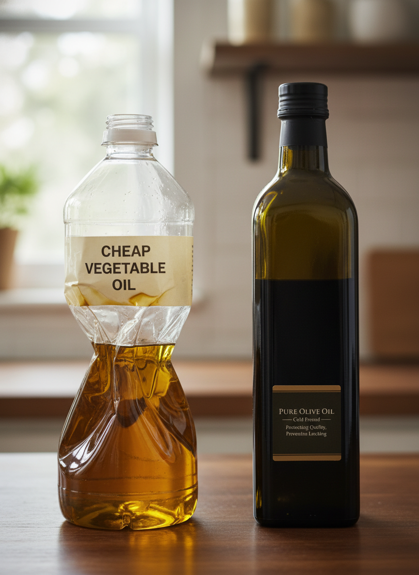 방앗간에서 갓 짠 참기름을 사 올 때, 흔히 소주병이나 투명한 페트병에 담아오는 경우가 많습니다. 하지만 장기 보관을 생각한다면 이는 최악의 선택일 수 있습니다. 플라스틱 용기는 미세한 기공이 있어 공기 투과율이 유리병보다 높을 뿐 아니라, 기름 성분이 플라스틱 내부의 화학 물질을 용출시킬 가능성도 배제할 수 없습니다.