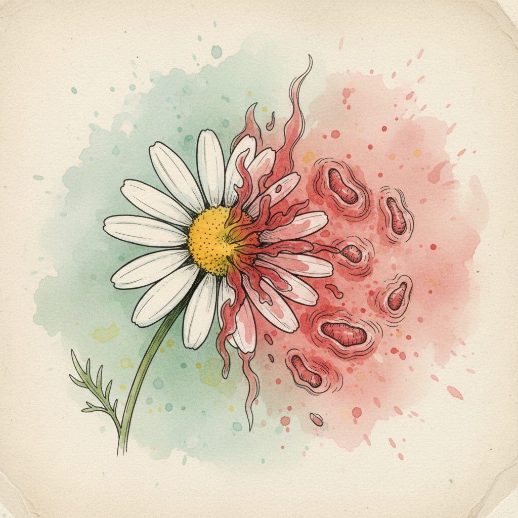 가장 먼저 확인해야 할 것은 본인의 '알레르기 이력'입니다. 캐모마일은 생물학적으로 국화과(Asteraceae)에 속하는 식물입니다. 만약 평소에 국화, 돼지풀(Ragweed), 금잔화, 데이지 같은 꽃가루에 알레르기 반응을 보인 적이 있다면 캐모마일 차를 마셨을 때 유사한 증상이 나타날 확률이 매우 높습니다. 이를 '교차 반응'이라고 합니다.