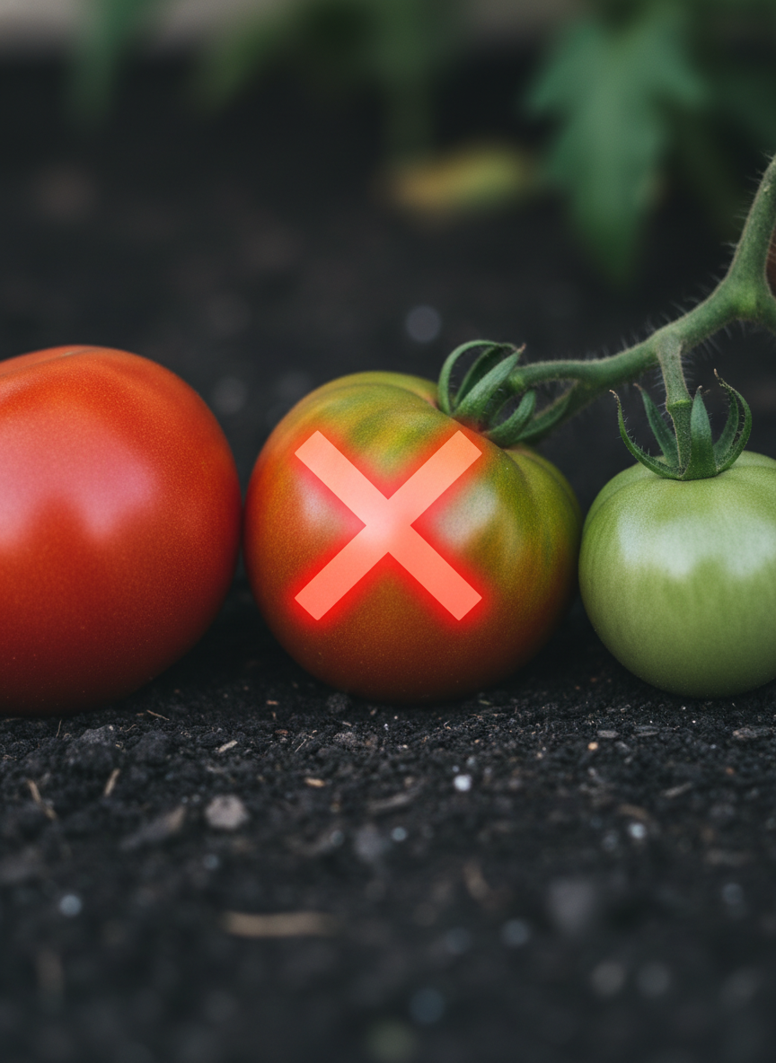 가끔 마트에서 푸른색이 도는 덜 익은 토마토를 볼 때가 있습니다. 이때 존재하는 '솔라닌(Solanine)'이라는 독성 물질은 감자 싹에 있는 독소와 같습니다. 이를 섭취하면 두통, 복통, 메스꺼움, 심할 경우 전신 마비 증상까지 올 수 있습니다. 따라서 반드시 붉게 완숙된 토마토를 고르거나, 후숙하여 섭취해야만 합니다.