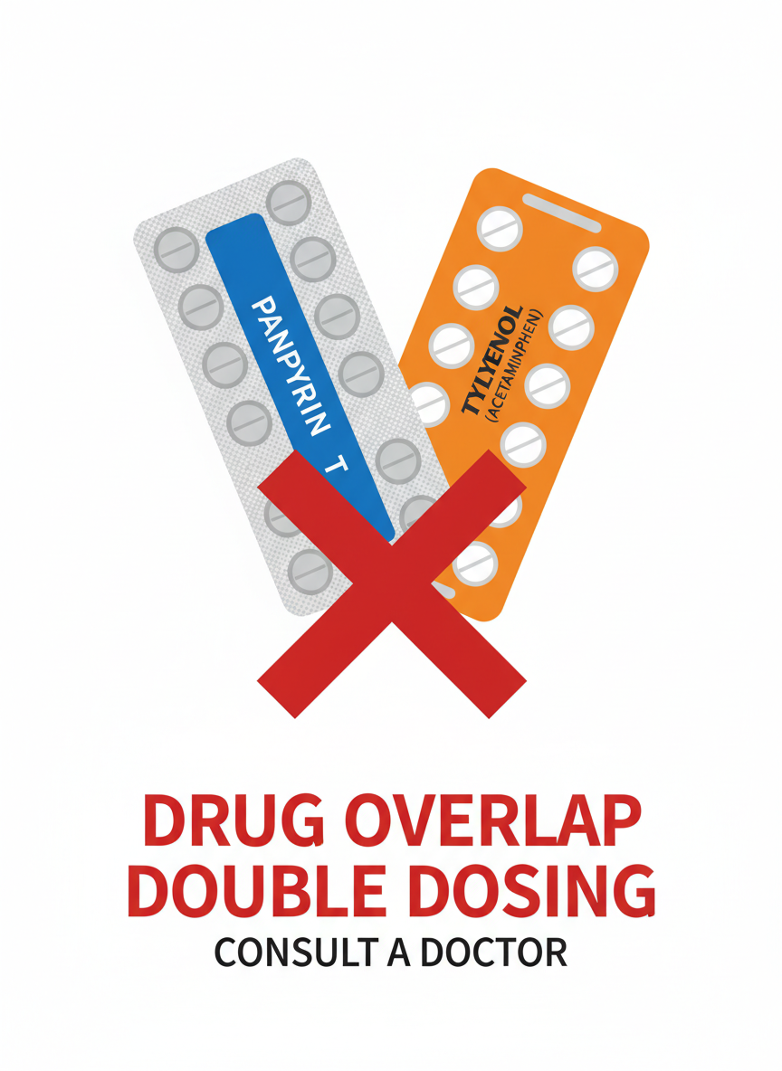 판피린의 주성분인 아세트아미노펜은 타이레놀 등의 진통제에도 들어있는 성분입니다. 머리가 아프다고 해서 판피린을 마시고 타이레놀을 또 드시면, 간에 심각한 손상을 줄 수 있는 '과다 복용' 상태가 됩니다. 하루 총 아세트아미노펜 섭취량을 반드시 체크해야 합니다.