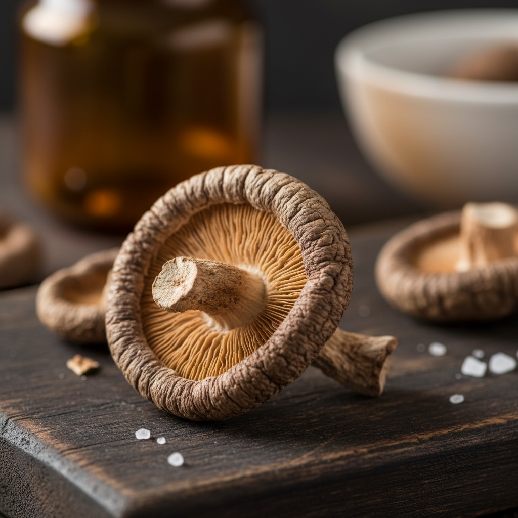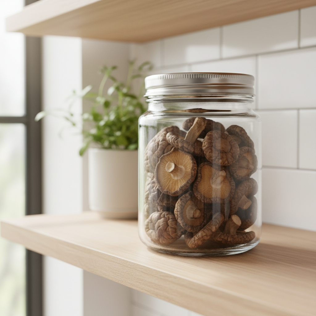 잘 말린 표고버섯은 밀폐 용기에 넣어 실온 보관하거나 냉동 보관하면 1년 내내 먹을 수 있습니다. 요리에 사용할 때는 미지근한 설탕물에 살짝 불려보세요. 감칠맛 성분인 구아닐산이 폭발적으로 우러나와 천연 조미료 역할을 톡톡히 해냅니다. 꼬들꼬들해진 식감은 덤입니다.