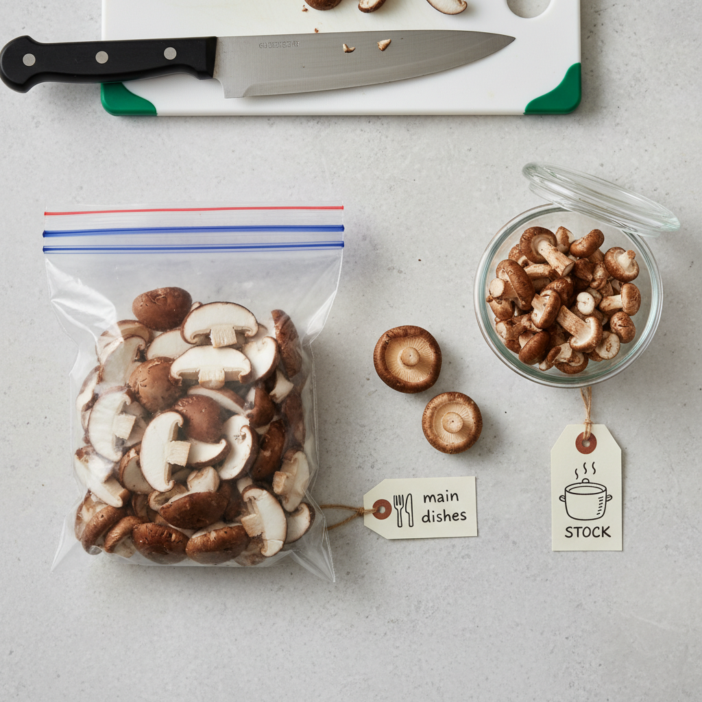 일주일 내에 다 먹을 자신이 없다면 고민하지 말고 냉동실로 직행해야 합니다. 식재료의 가치는 신선할 때 가장 높습니다. 시들해질 때까지 기다렸다 얼리는 것은 이미 가치가 떨어진 주식을 뒤늦게 매도하는 것과 같습니다. 가장 싱싱할 때 손질해서 얼려야 해동 후에도 쫄깃한 식감이 살아납니다.냉동 보관의 핵심은 '바로 요리할 수 있는 상태'로 만드는 것입니다. 통째로 얼리면 나중에 돌덩이처럼 변한 버섯을 썰다가 칼이 미끄러워 다칠 위험이 큽니다. 기둥을 떼어내고(기둥은 육수용으로 따로 모으세요), 갓 부분에 있는 먼지를 마른 행주나 솔로 가볍게 털어낸 뒤, 요리하기 좋은 두께로 슬라이스해 주세요.