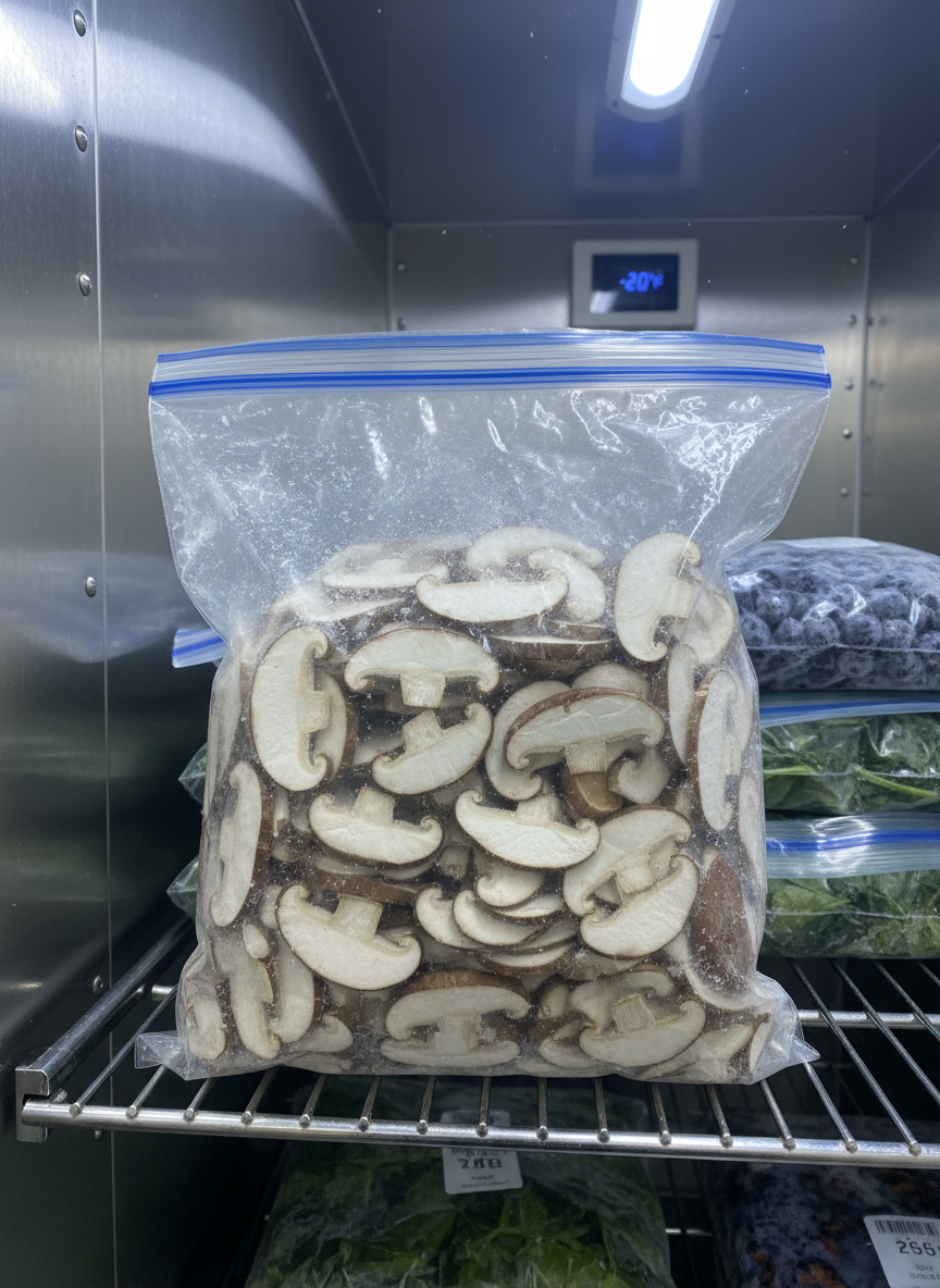 이때 절대 물에 씻어서는 안 됩니다. 물을 머금은 채로 얼리면 조직이 파괴되어 나중에 흐물흐물해집니다. 썬 버섯은 지퍼백에 넓게 펼쳐서 담아 공기를 쫙 빼고 밀봉하세요. 이렇게 '급속 냉동'에 가까운 환경을 만들어주면, 필요할 때마다 된장찌개나 볶음 요리에 한 줌씩 꺼내 쓰기 정말 편리합니다. 마치 필요할 때마다 꺼내 쓰는 비상금 통장처럼 든든하실 겁니다.