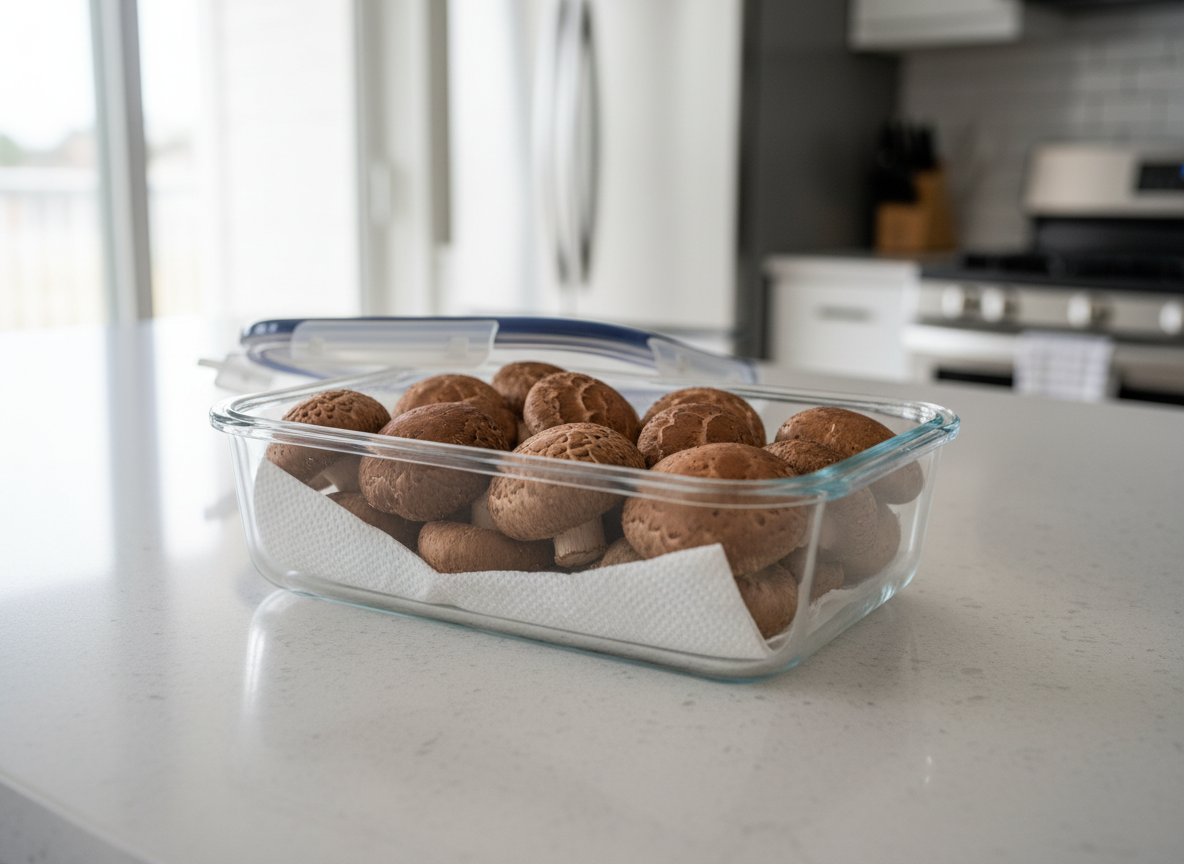 이렇게 하면 버섯이 뽀송뽀송한 상태를 유지하며 최대 1주일 이상 거뜬히 버팁니다. 밀폐 용기 뚜껑을 닫을 때도 꽉 닫기보다는 아주 살짝 숨구멍을 남겨두거나, 뚜껑 안쪽에도 키친타월을 한 장 덧대어 결로 현상을 막아주는 것이 좋습니다. 습기를 머금은 키친타월은 2~3일에 한 번씩 교체해 주는 부지런함이 버섯의 수명을 결정합니다.